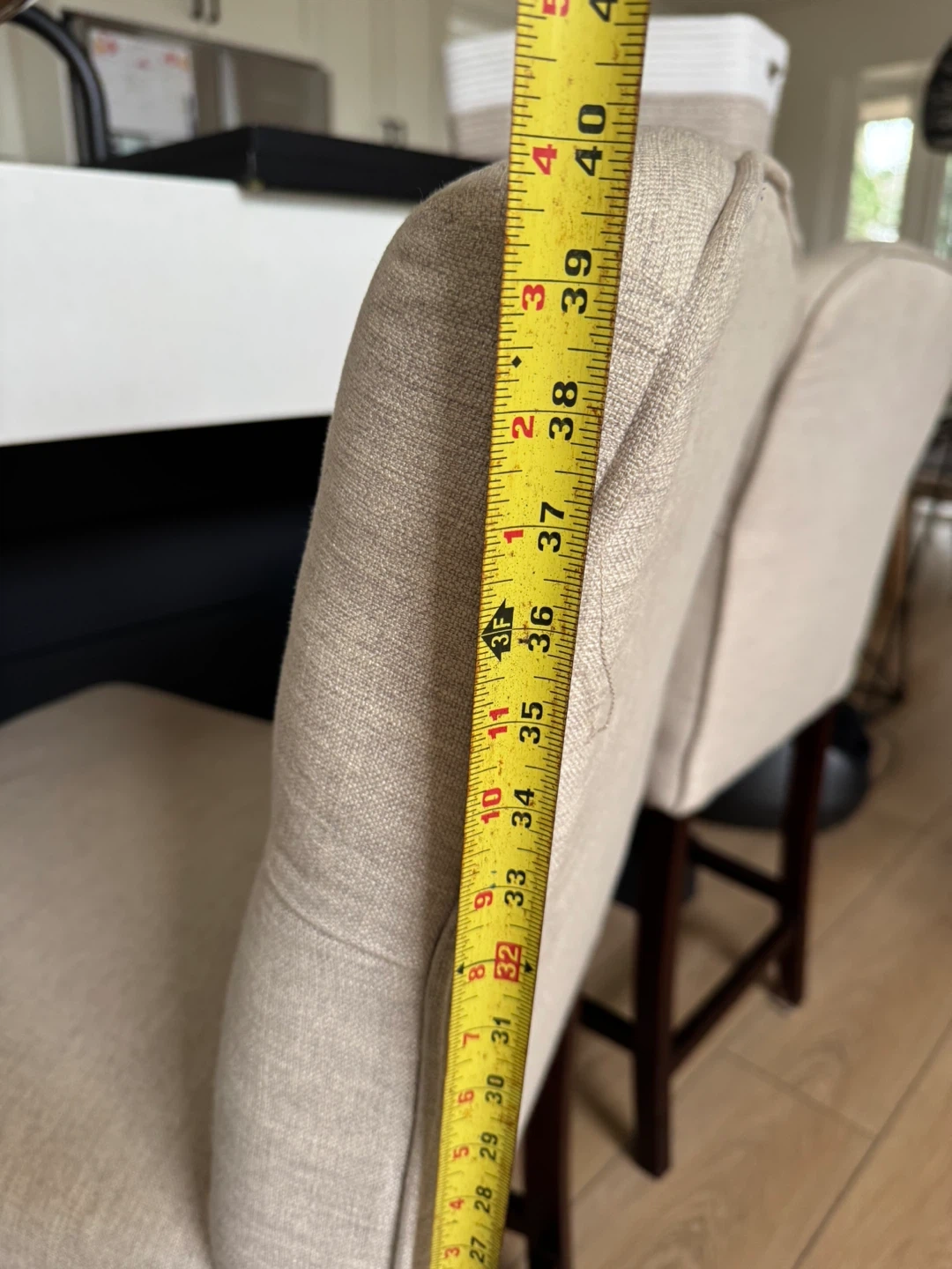 Height to top of bar stool: about 40”