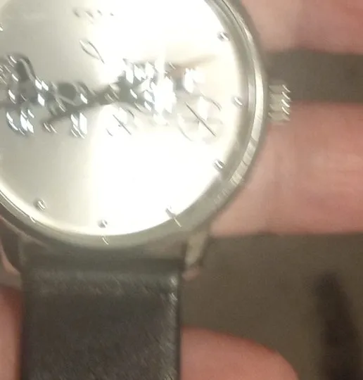 This is a silver-toned watch with a black leather band. It features a minimalist dial and a classic analog display. The watch has a sleek, modern design perfect for everyday wear.