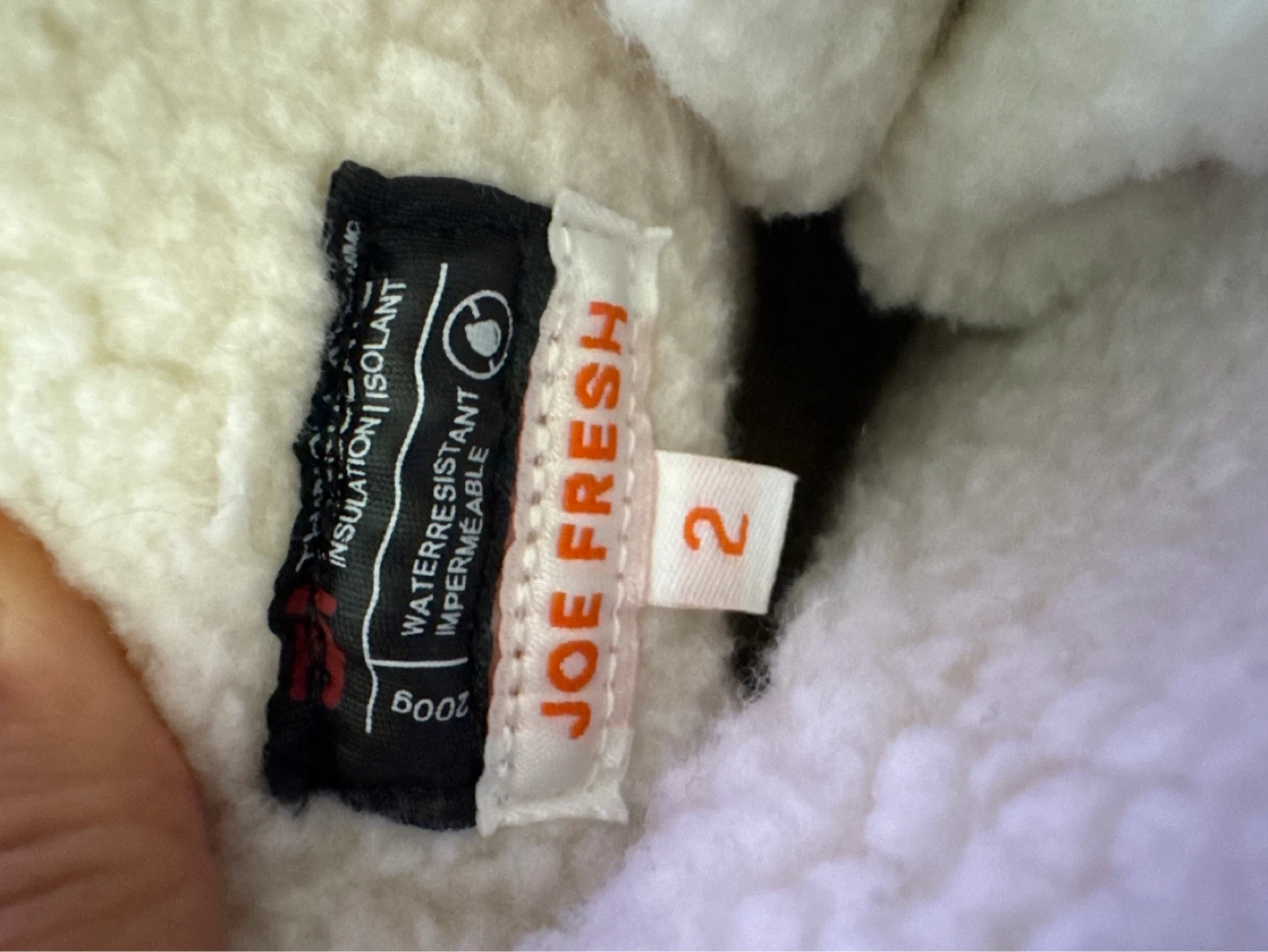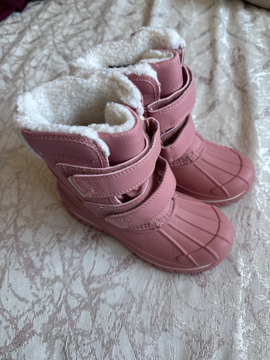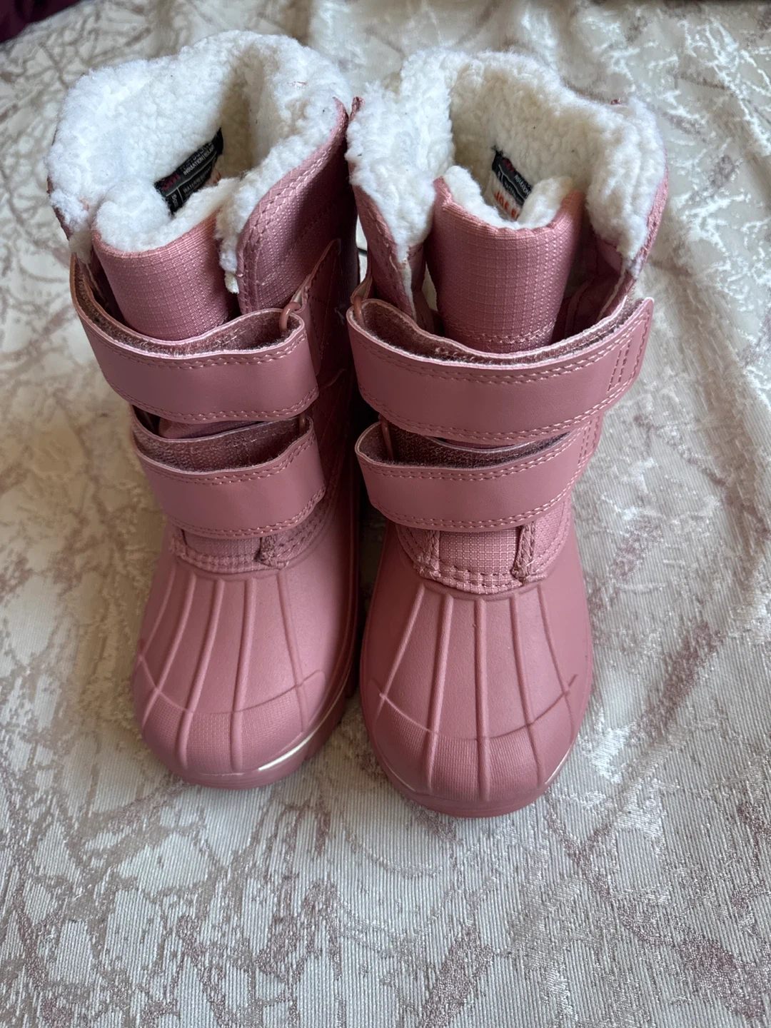 Joe Fresh winter boots in pink. Size 2. Water-resistant with 200g insulation. They're perfect for keeping little feet warm and dry in the snow!