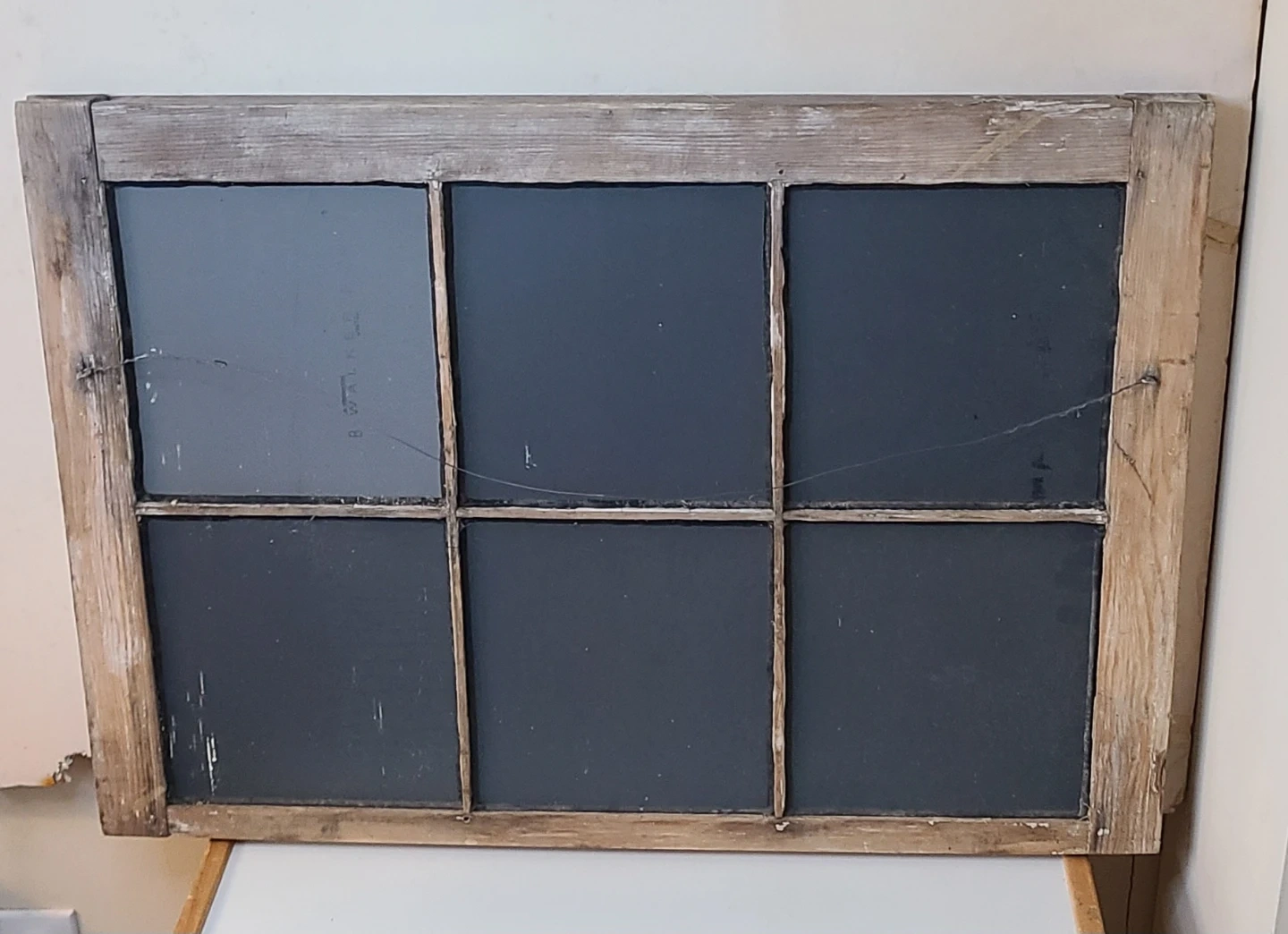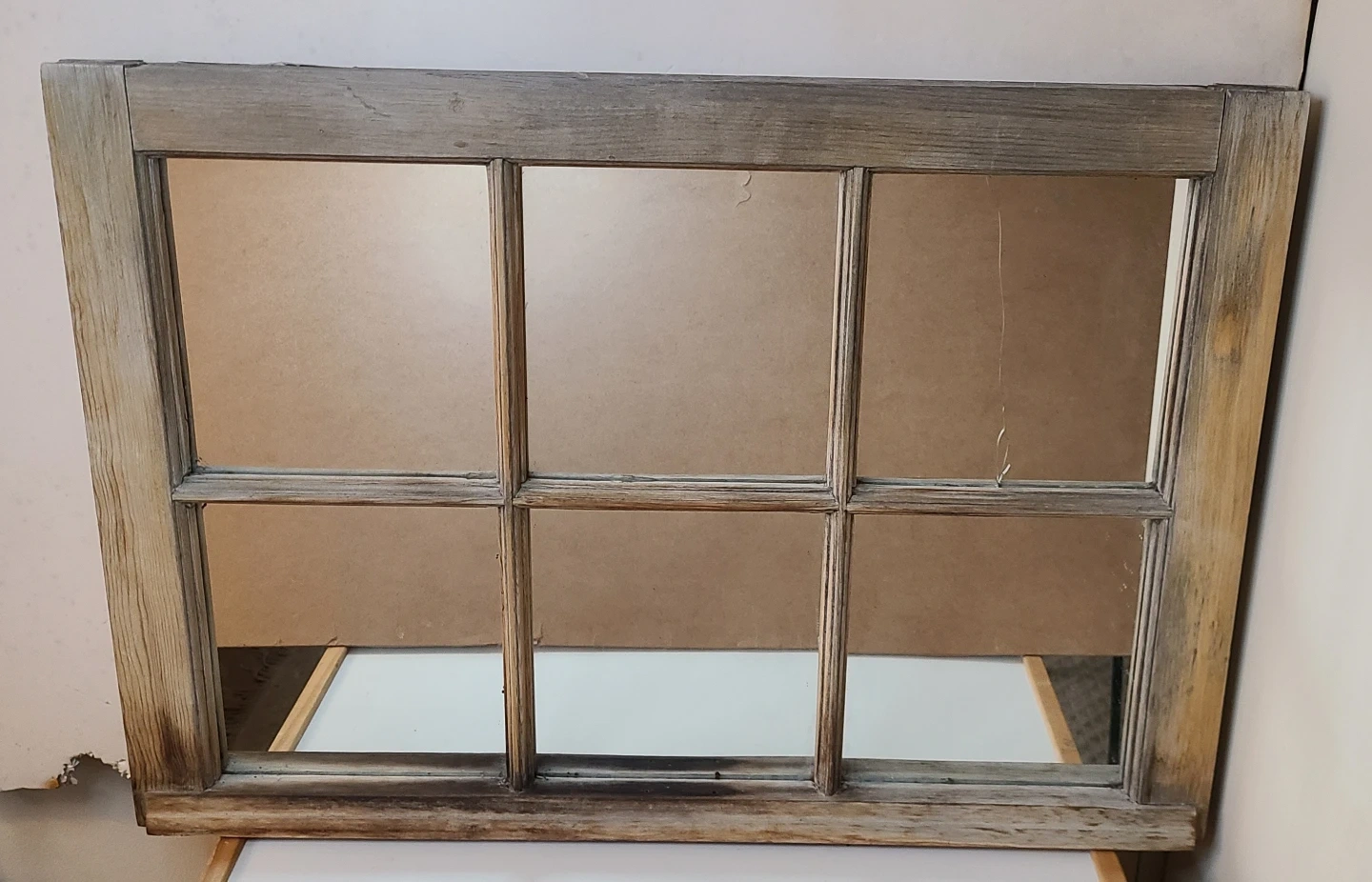 Very old window from an over century old farmhouse. Paint was stripped & sanded, mirror pieces installed.