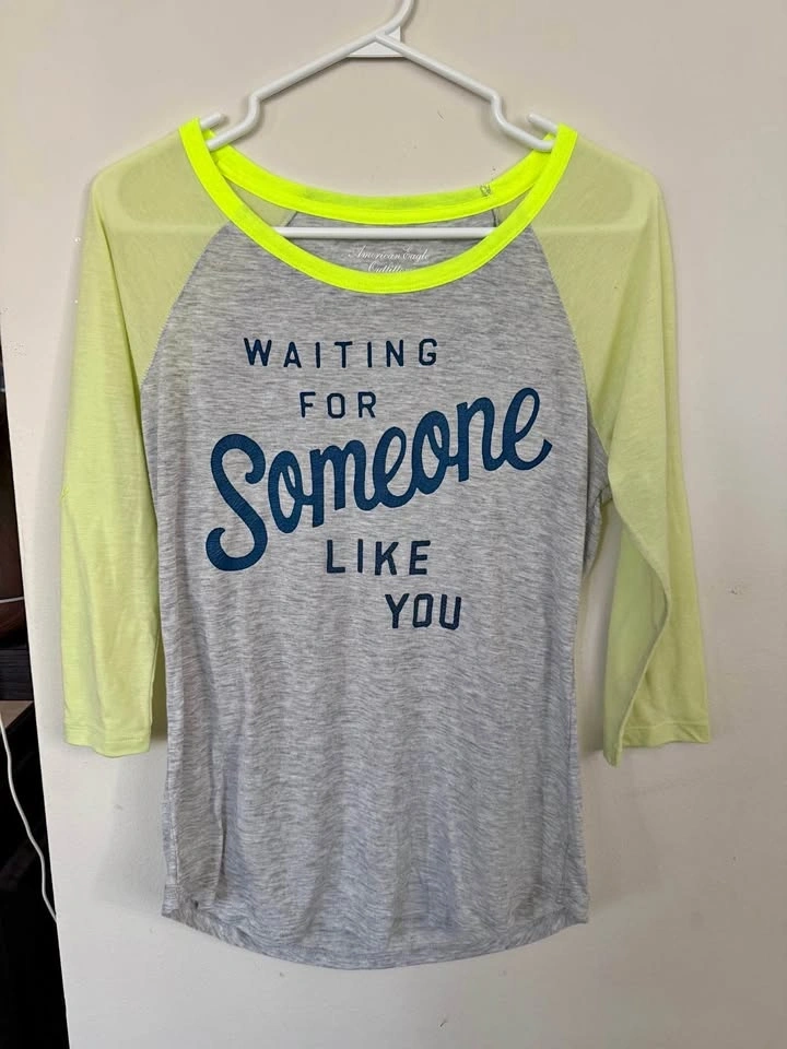 Women’s American Eagle Raglan Baseball Shirt size large - Waiting for someone like you. Willing to do bundle pricing/discount if multiple items are purchased. I have posted other tshirts, hoodies and pants for sale on my profile, feel free to check those out!