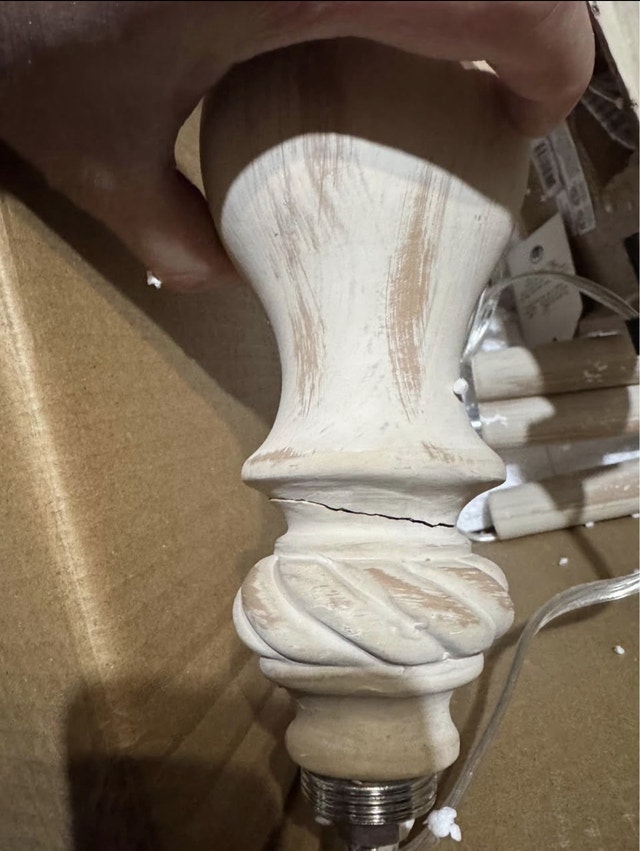 Brand new, never used, and still in its original box. This elegant 62.5” floor lamp features a classic design with a cream ceramic-look base reinforced by a metal pipe. One small crack occurred during transport—it’s been glued, is purely cosmetic, and doesn’t affect stability or function (see photos). Details: • Dimensions: 62.5” H × 15” W × 15” D • Switch Type: 3-Way (Socket location) • Bulb Required: E26/Medium Base (Not included) • Max Wattage: 150W • Plug-in, 110V • Material: Resin • Fire Resistant • Cord Length: 72” A stylish, functional piece perfect for living rooms, bedrooms, or offices.
