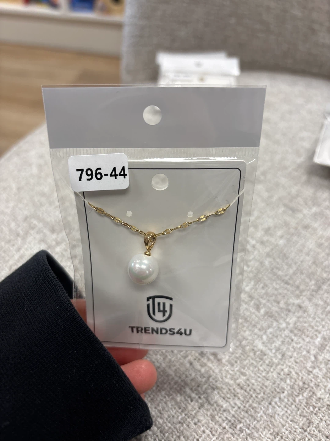TRENDS4U necklace with a single pearl pendant. It's a gold-toned chain. Perfect for adding a touch of elegance to any outfit!