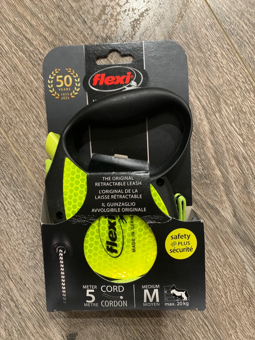 This is a Flexi brand retractable dog leash, size medium. It's a 5-meter cord leash. Comes with original packaging.
