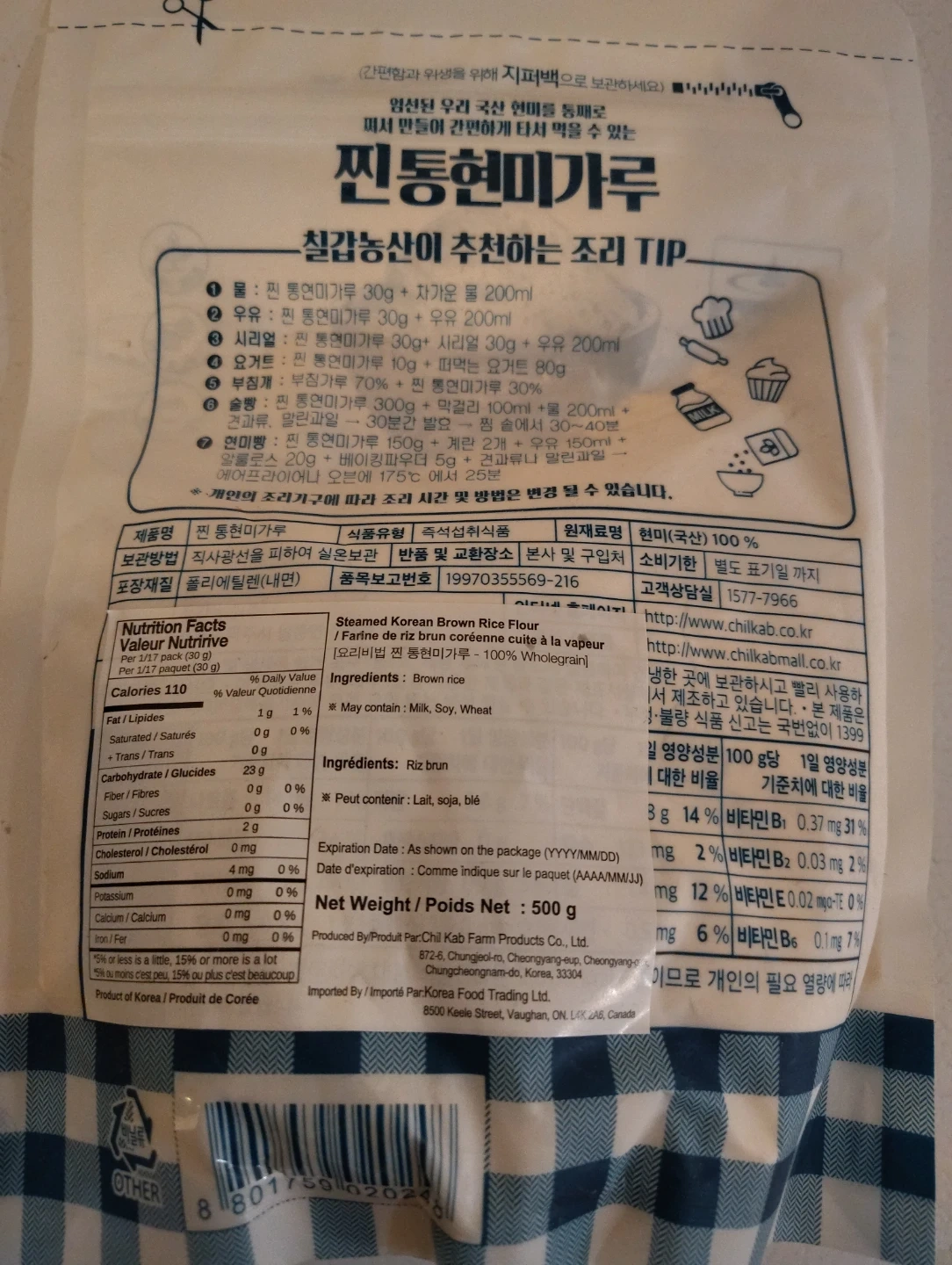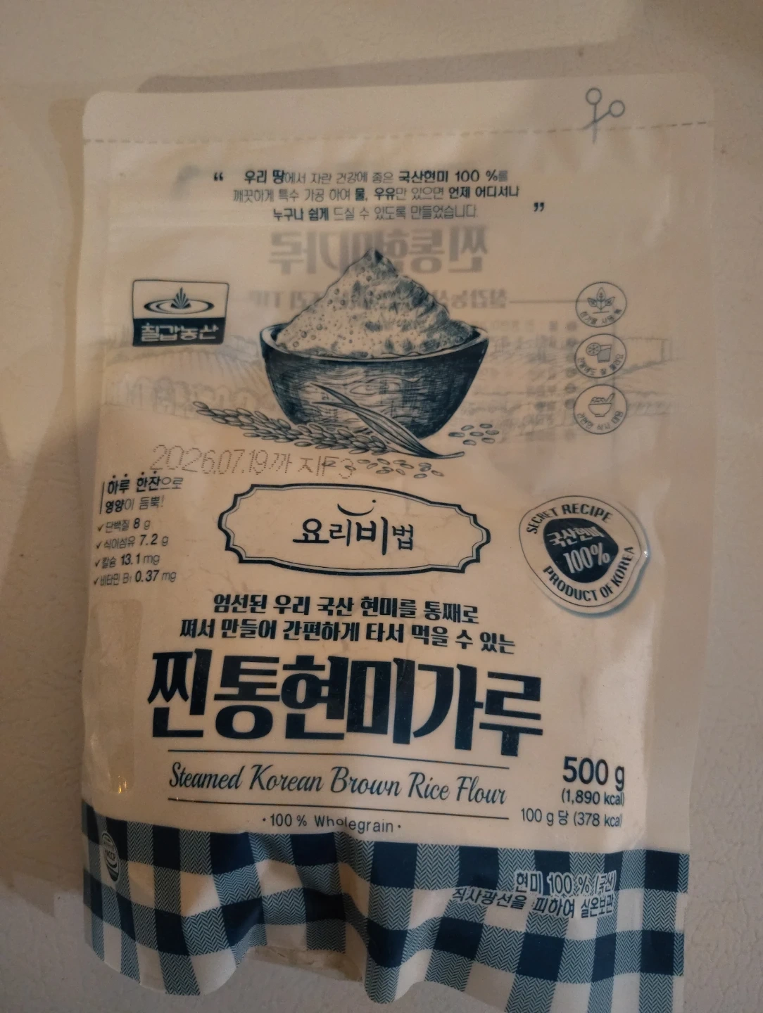 Steamed Korean Brown Rice Flour, 100% whole grain. Expiration date as shown on the package 2026/07/19. Perfect for making Korean rice cakes and porridge.
