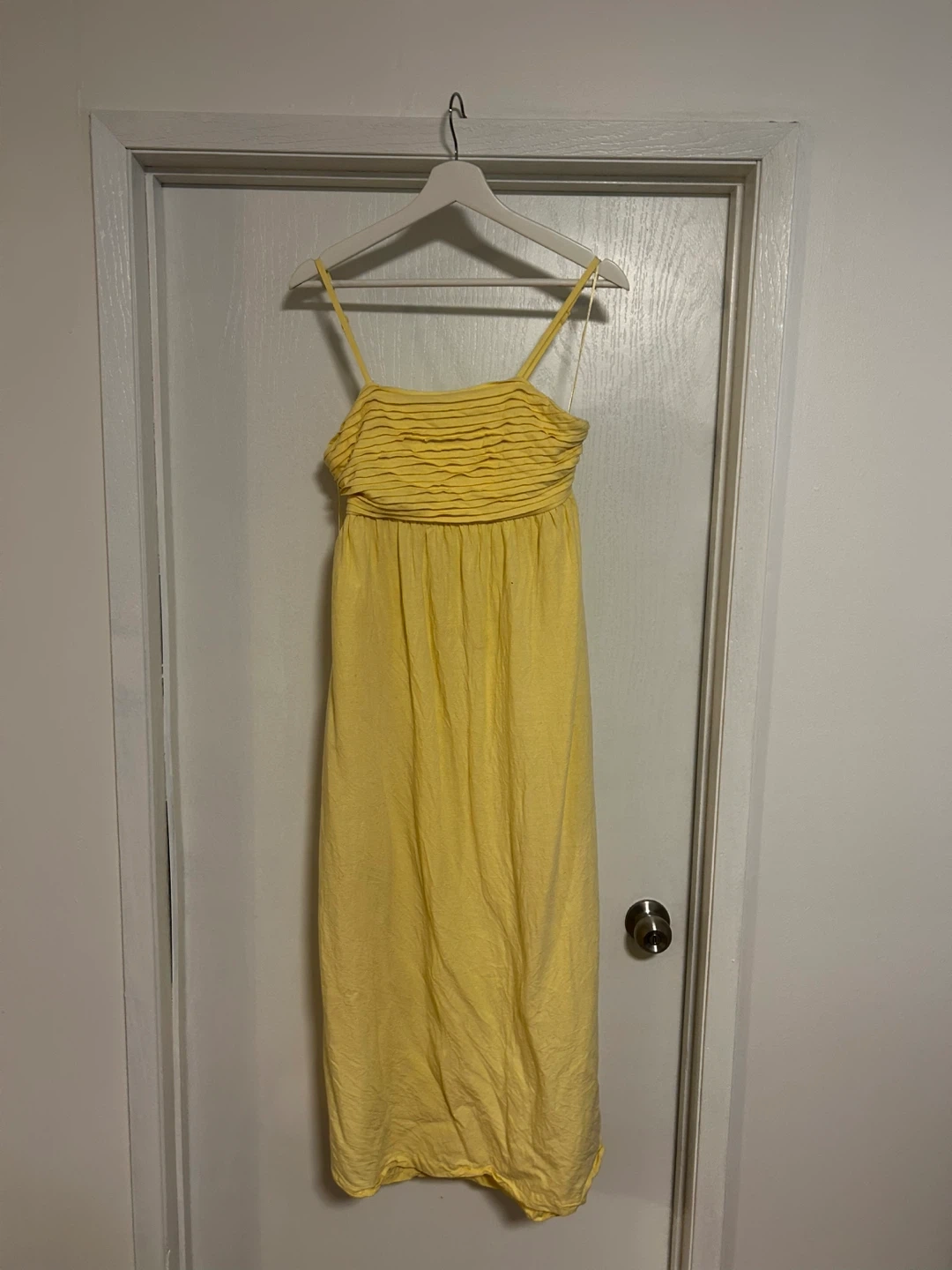 Selling a lovely yellow maxi dress! It's a size medium and made of a comfy blend of rayon, cotton, and linen. Perfect for summer days or evenings out
