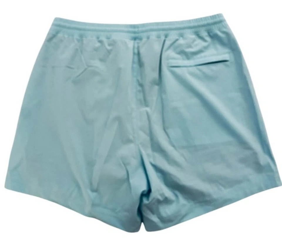 Light blue hybrid shorts with an elastic waistband and adjustable drawstring. Features convenient pockets, including a secure zippered back pocket. Designed for all-day wear, from casual outings to the beach.