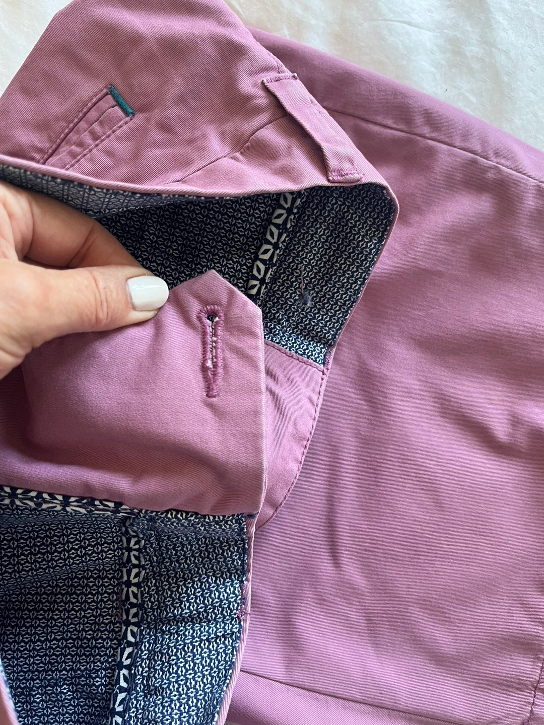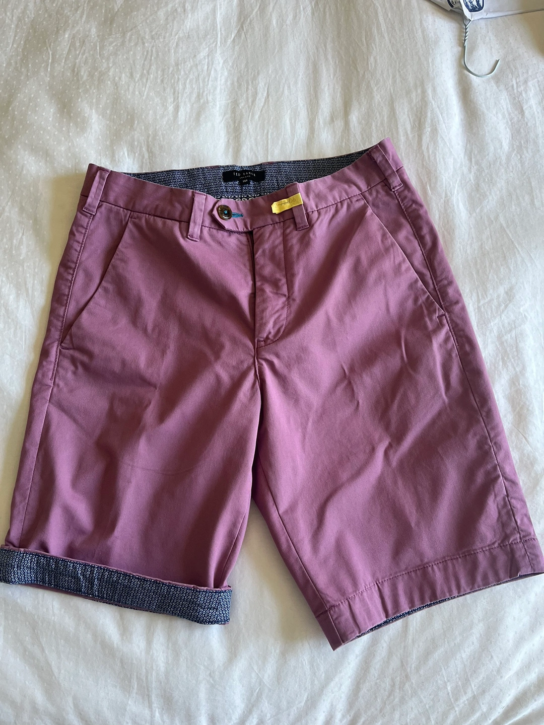 These shorts in great condition missing inside button (doesn’t need it). Always dry cleaned.
