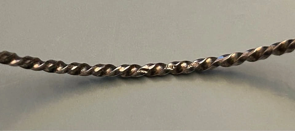 Stylish twisted sterling silver bangle with a rope design. Good for stacking or wearing alone. 6.8cm diameter, 4.3 grams weight. Haven’t worn, easy on the go.