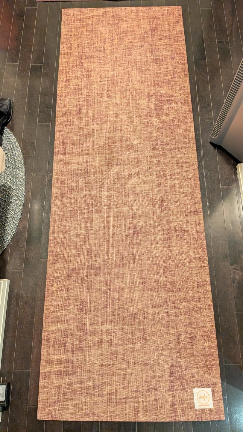 This Maji Sports yoga mat is a lovely burgundy and tan colour. It's made from a textured material for grip and provides great stability on hard or soft surfaces.