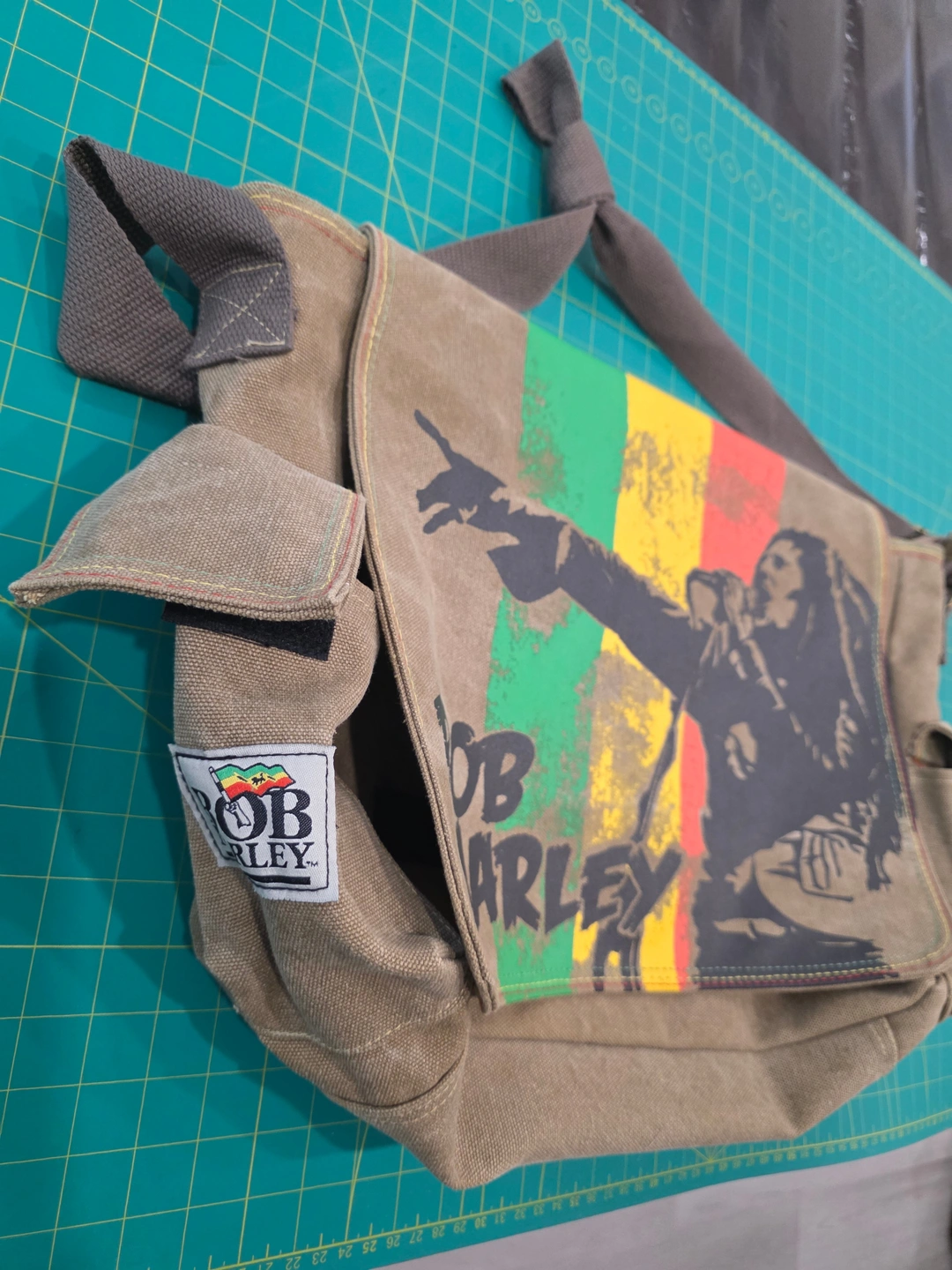 Authentic mid‑2000s Bob Marley canvas messenger bag, purchased brand‑new at a Sandals Resort in Jamaica and stored untouched for nearly two decades. This is a resort‑exclusive, small‑batch piece, not the mass‑market Marley merch you see online.
