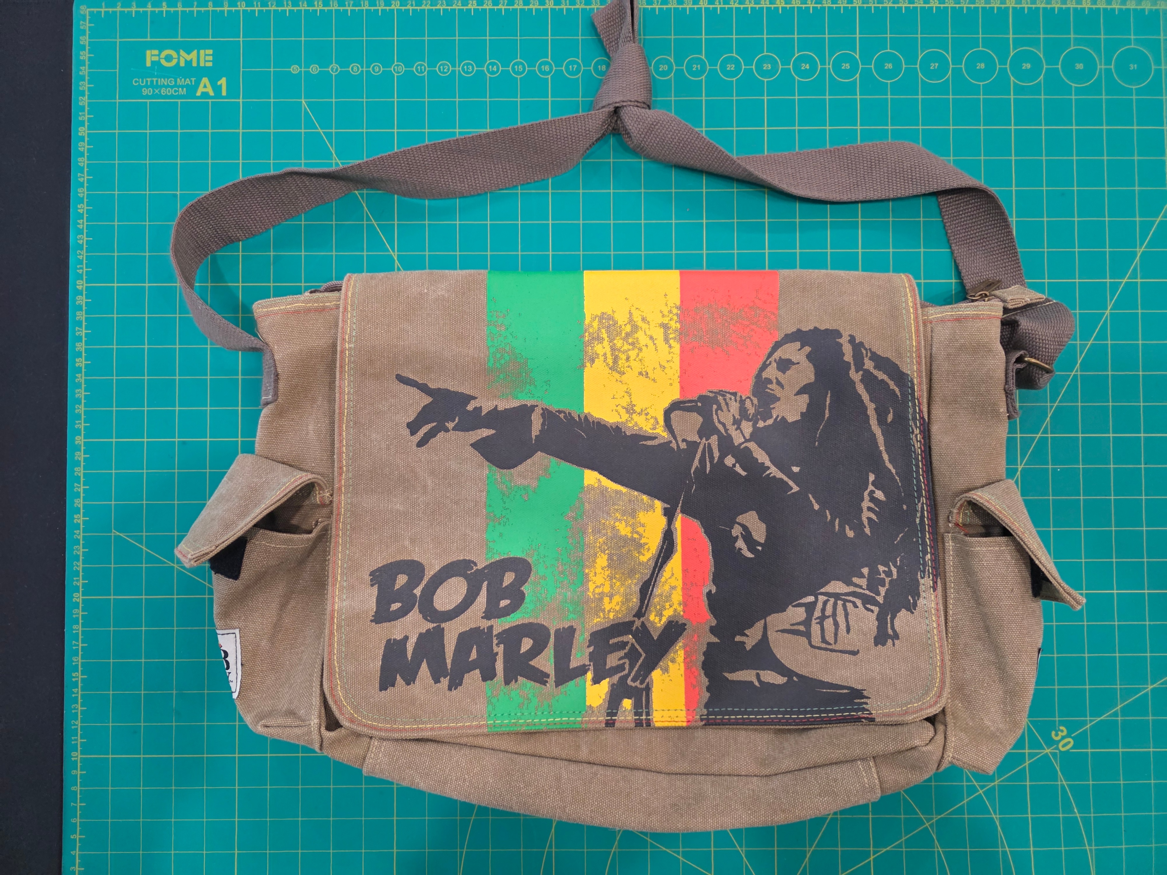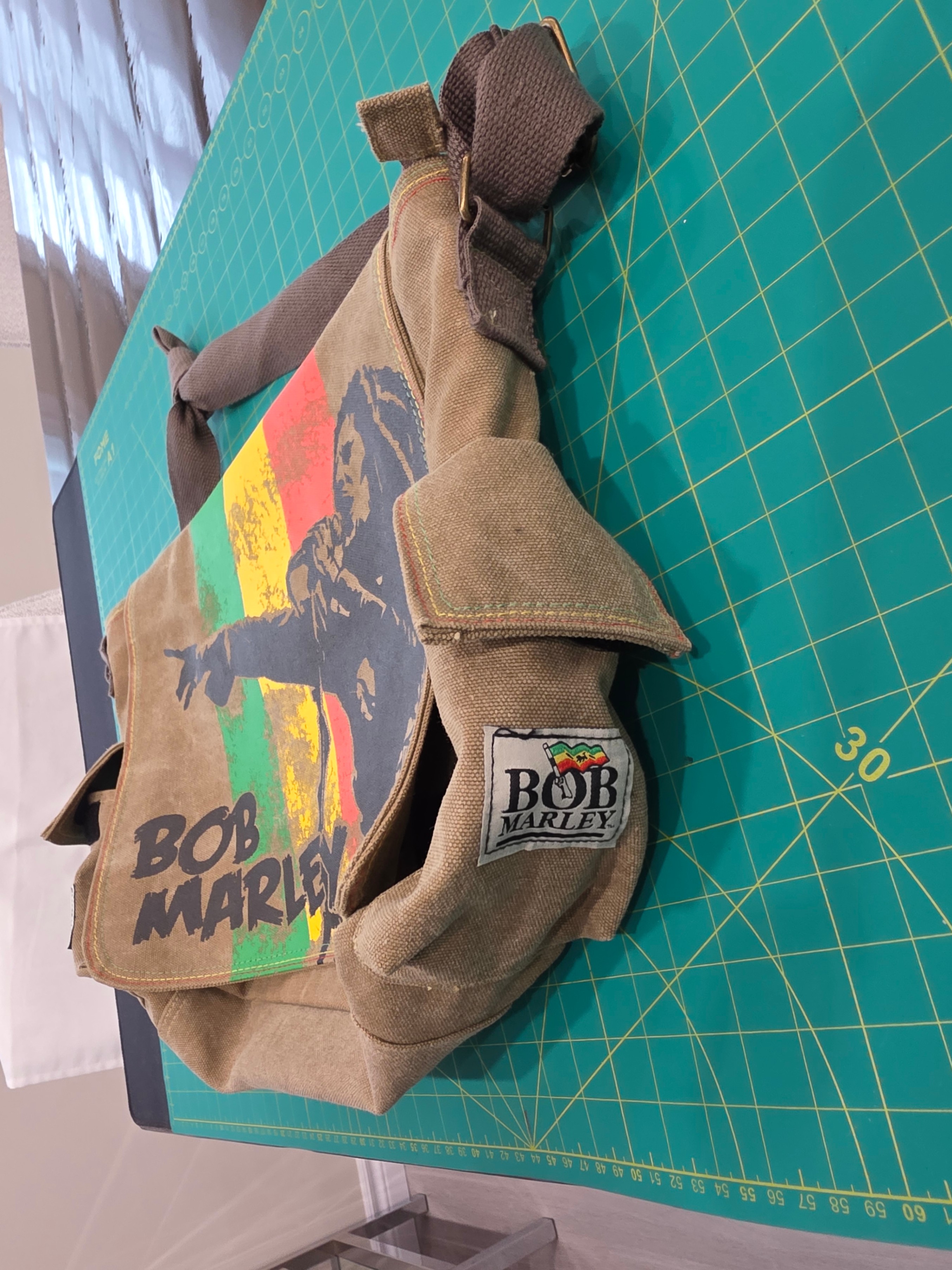Authentic mid‑2000s Bob Marley canvas messenger bag, purchased brand‑new at a Sandals Resort in Jamaica and stored untouched for nearly two decades. This is a resort‑exclusive, small‑batch piece, not the mass‑market Marley merch you see online.