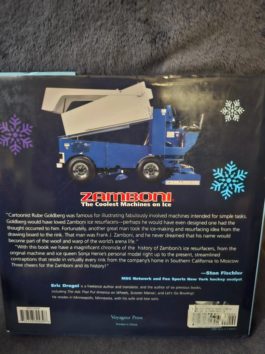 This book chronicles the history of the Zamboni ice resurfacing machine. It's filled with archival photographs and fascinating stories. A great read for hockey fans!