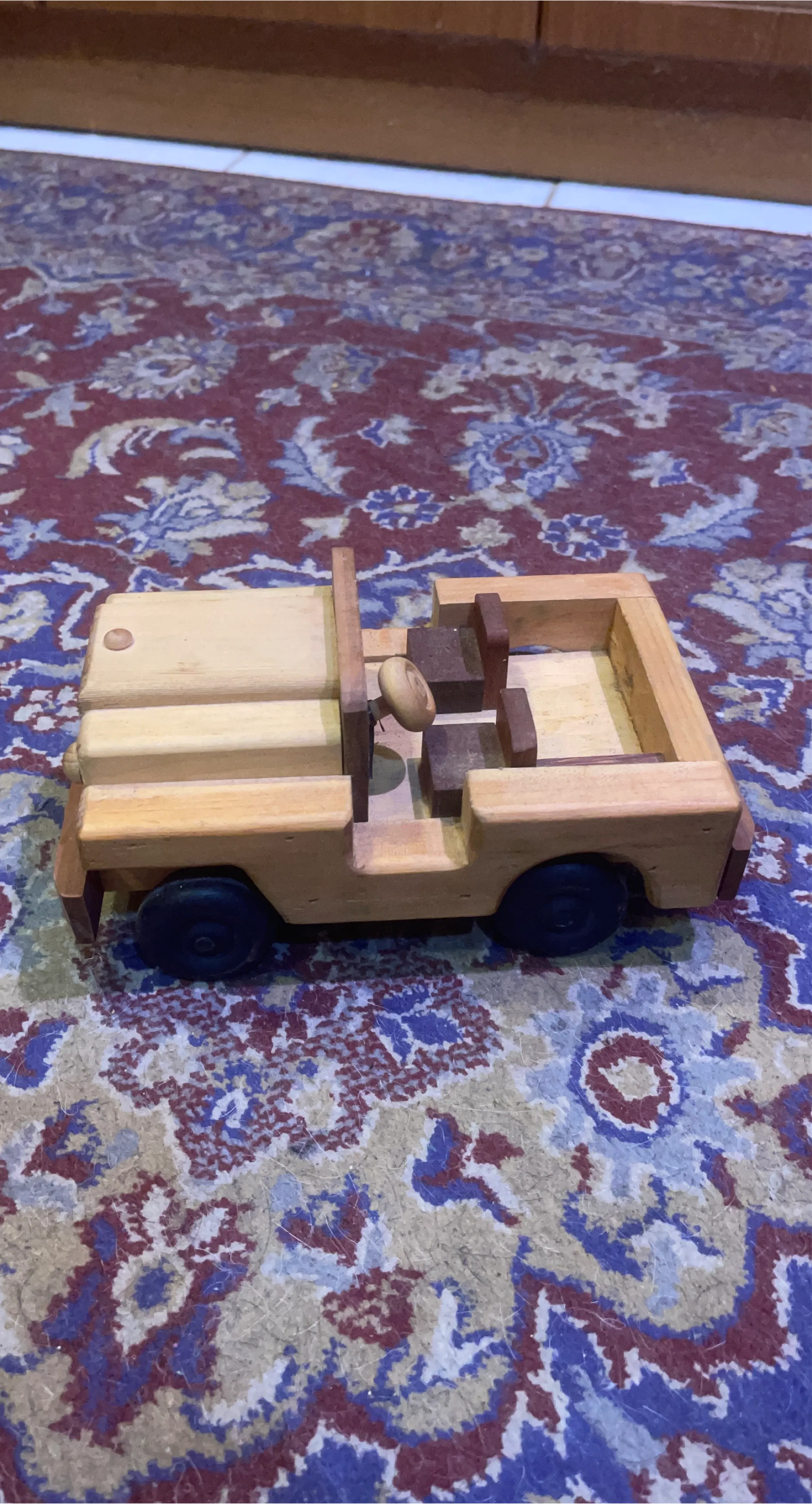 Buy & SellWooden Toy JeepWooden Toy Jeep$10This is a wooden toy jeep. It's made of natural wood with black wheels. Great for imaginative play!WHERE TO MEETCheck LocationView MapSELLERverifiedJamesBloor Annex22913 reviews0 chats·0 favorites·3 viewsSEND CHAT TO SELLERHi James! I’m interested in your listing.Hi James! I’m interested in your listing.Get the Karrot app to chatSign In to chat