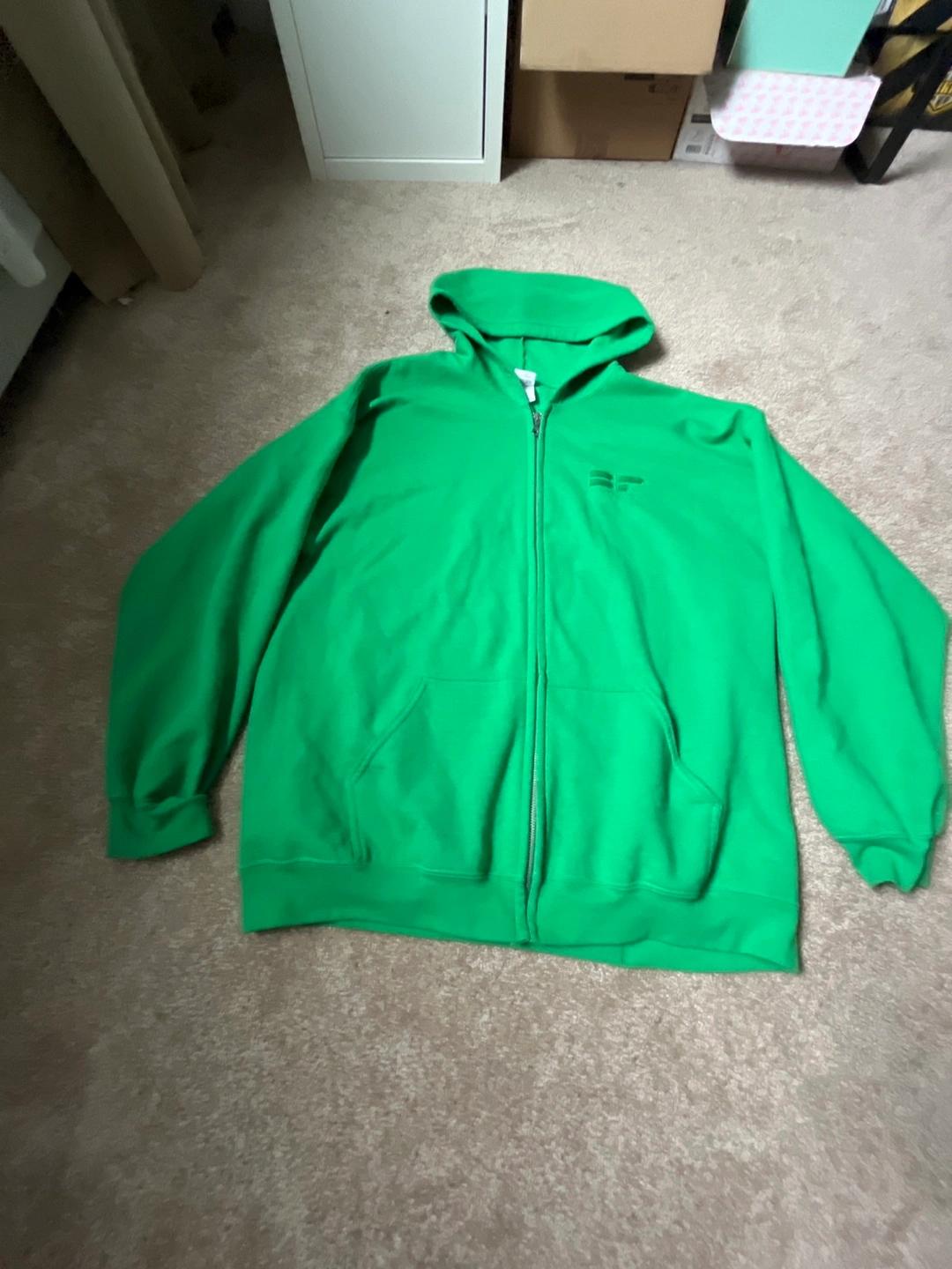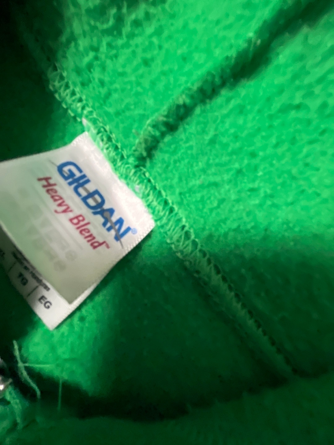 I'm selling a Gildan Heavy Blend full zip hoodie in a vibrant green colour. It's in great condition and a size EG!