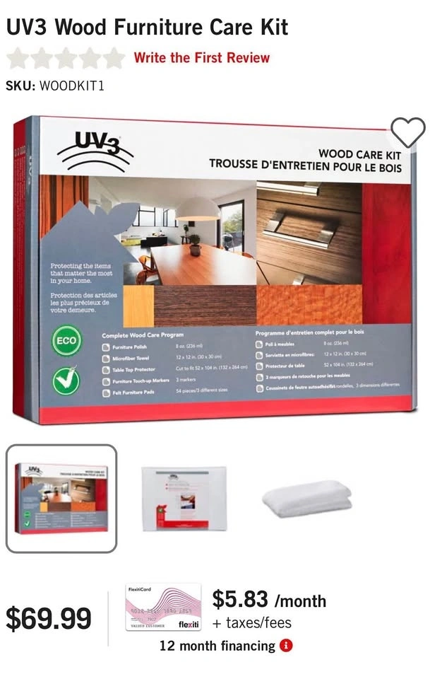 Brand new, never used Wood Care Kit from The Brick. All contents in the box are featured in the picture. Selling for $40. Cash only. Pick up in Guildford.