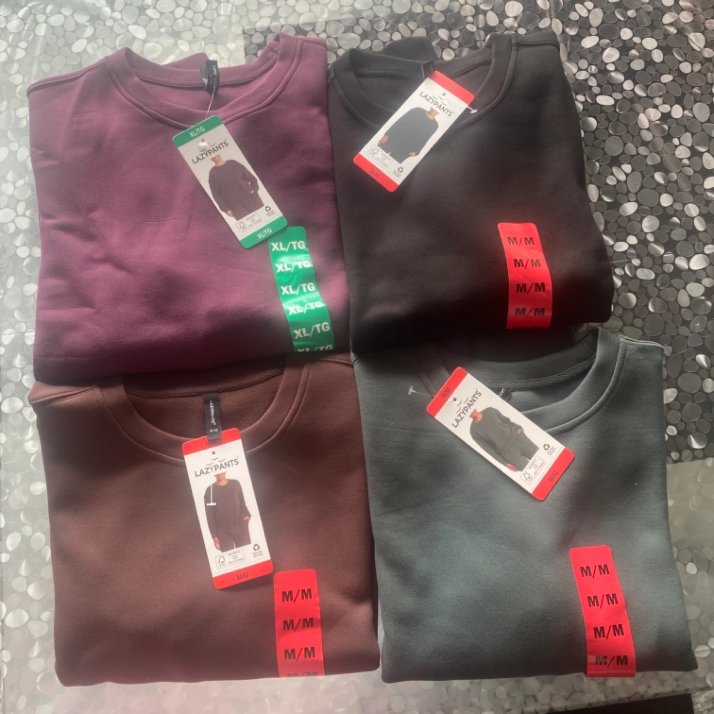 It includes Jeans, pants, trousers, sweaters, sweatshirts, tops and blouses, jackets etc.