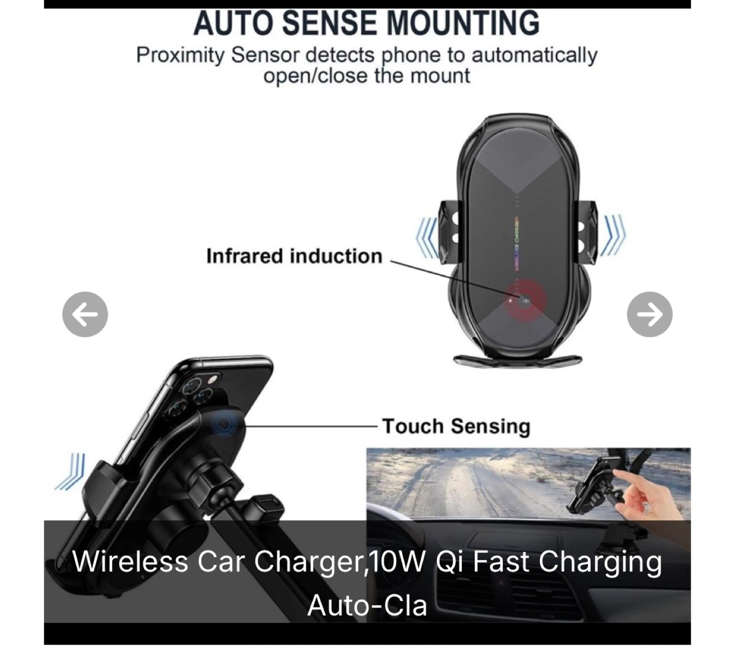 Wireless Car Charger 10W Qi Fast Charging Auto-Sense Mount
