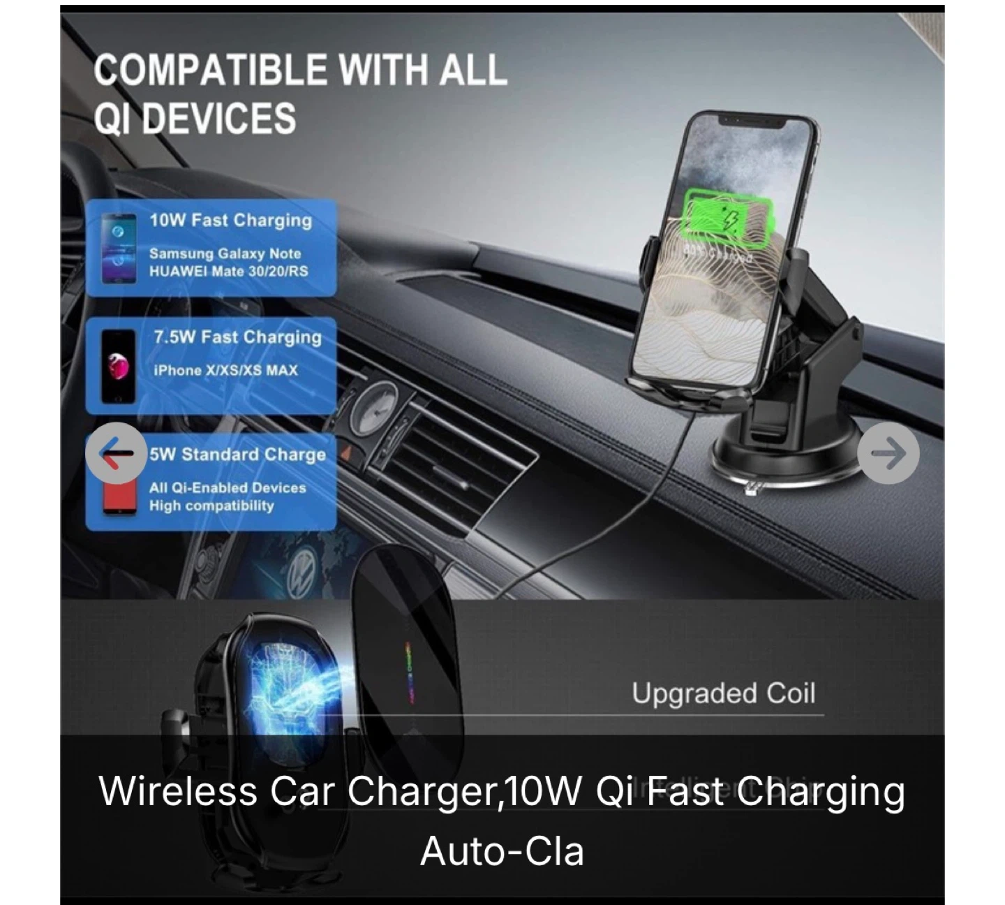 Wireless Car Charger 10W Qi Fast Charging Auto-Sense Mount