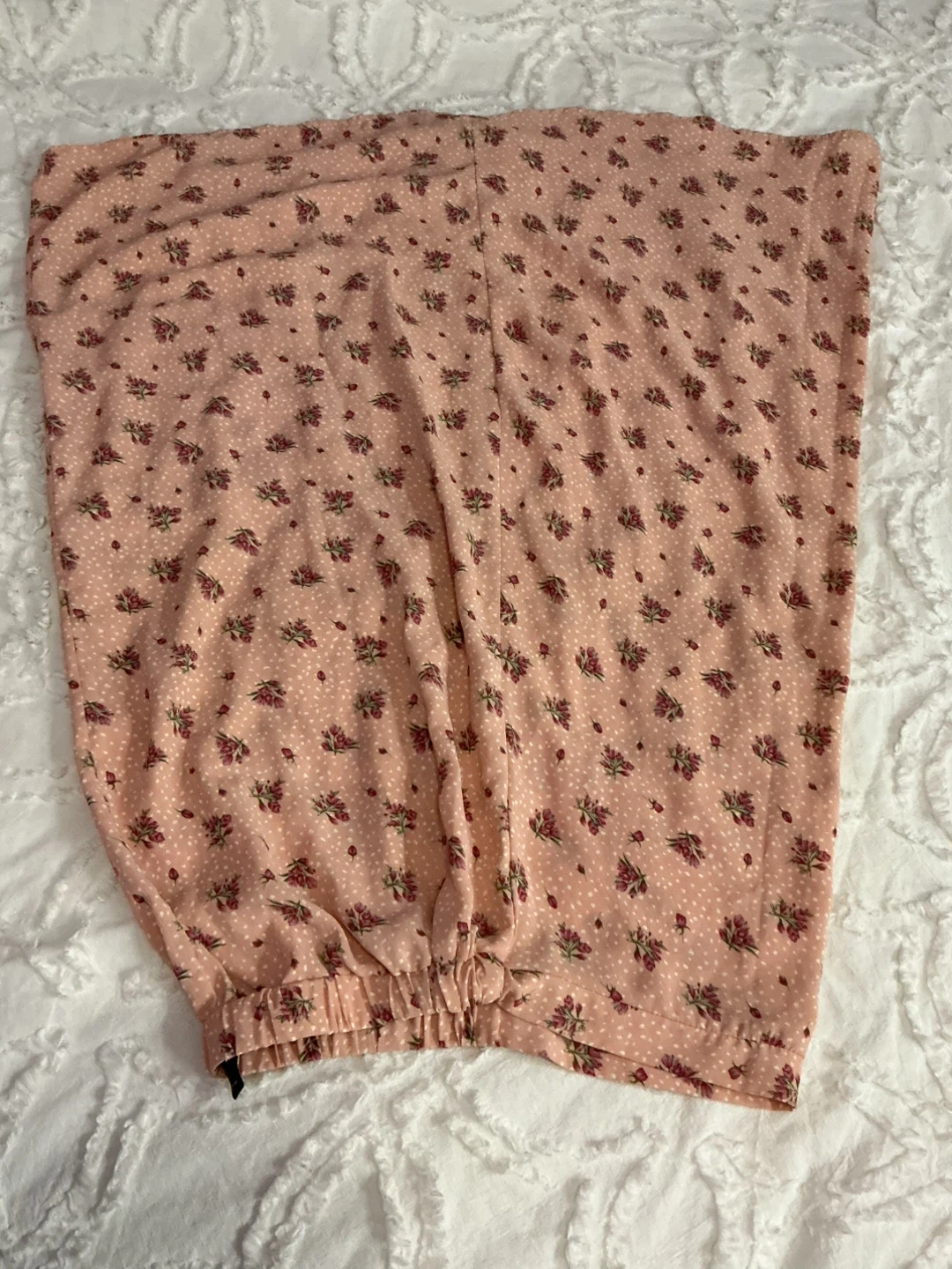 Comfy SHEIN skirt in a light pink with a floral pattern. Elastic waistband for a great fit. These are made of a flowy, lightweight material. Perfect for warmer weather! Wore just once