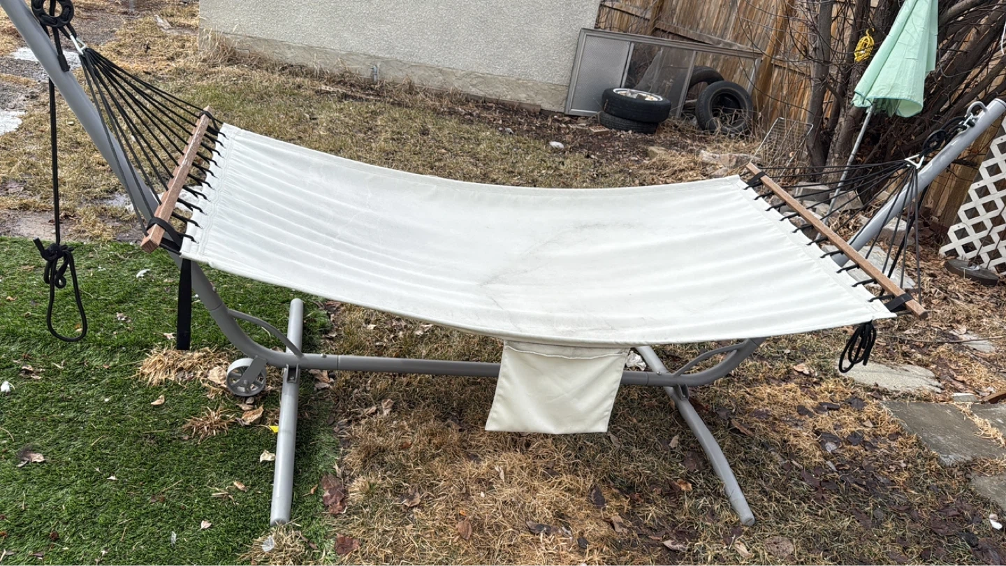 Buy & SellHammock with StandHammock with Stand$80White fabric hammock with a sturdy grey metal stand. It's great for relaxing outdoors. The stand has wheels for easy moving.WHERE TO MEETCheck LocationView MapSELLERJotPrince Rupert90 reviews0 chats·0 favorites·5 viewsSEND CHAT TO SELLERHi Jot! I’m interested in your listing.Hi Jot! I’m interested in your listing.Get the Karrot app to chatSign In to chat