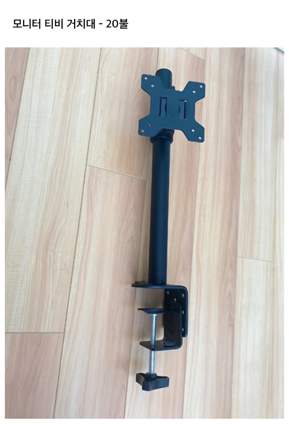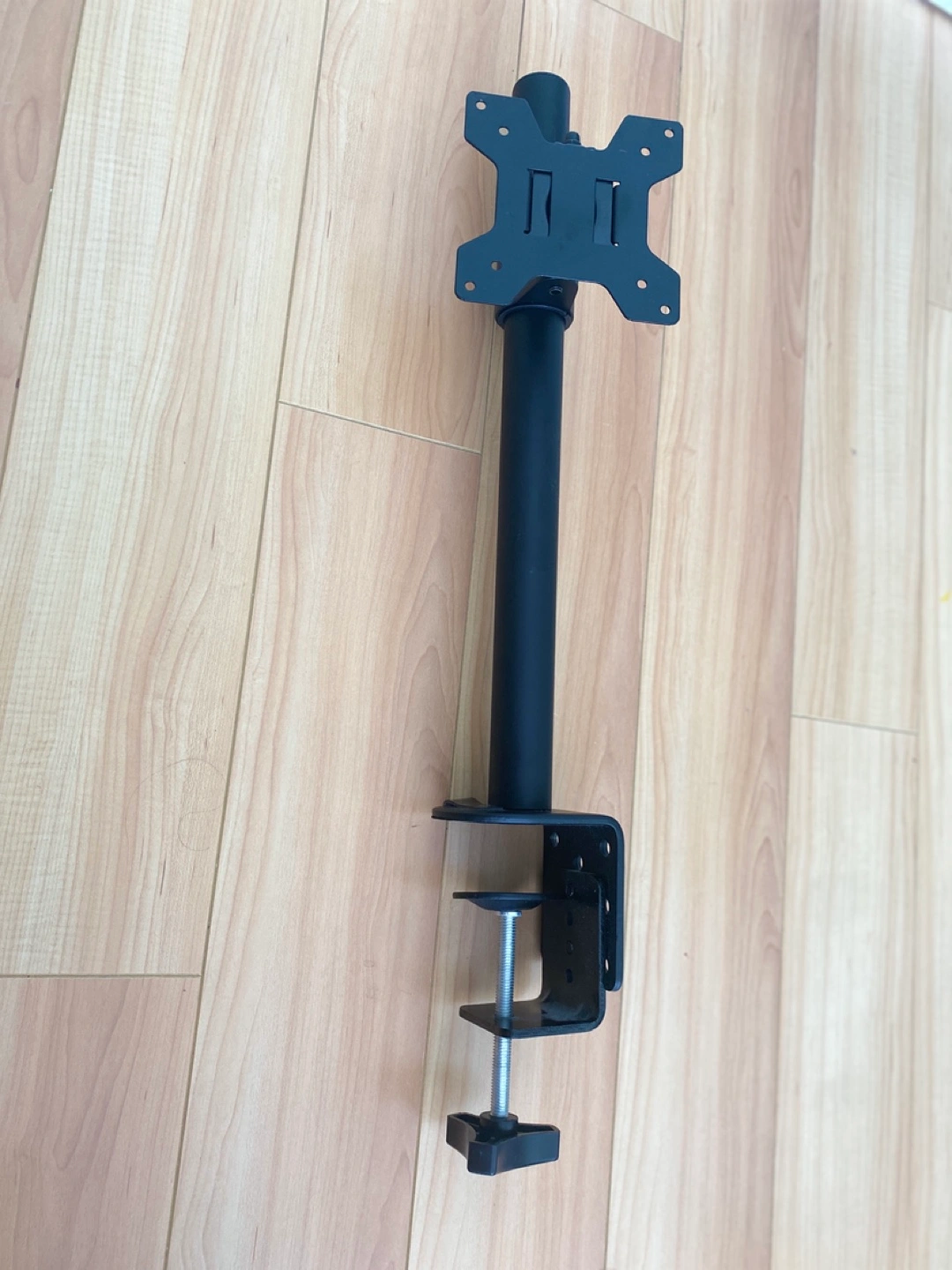 Black monitor mount. Attaches to desk via clamp. Adjustable height. Good condition.