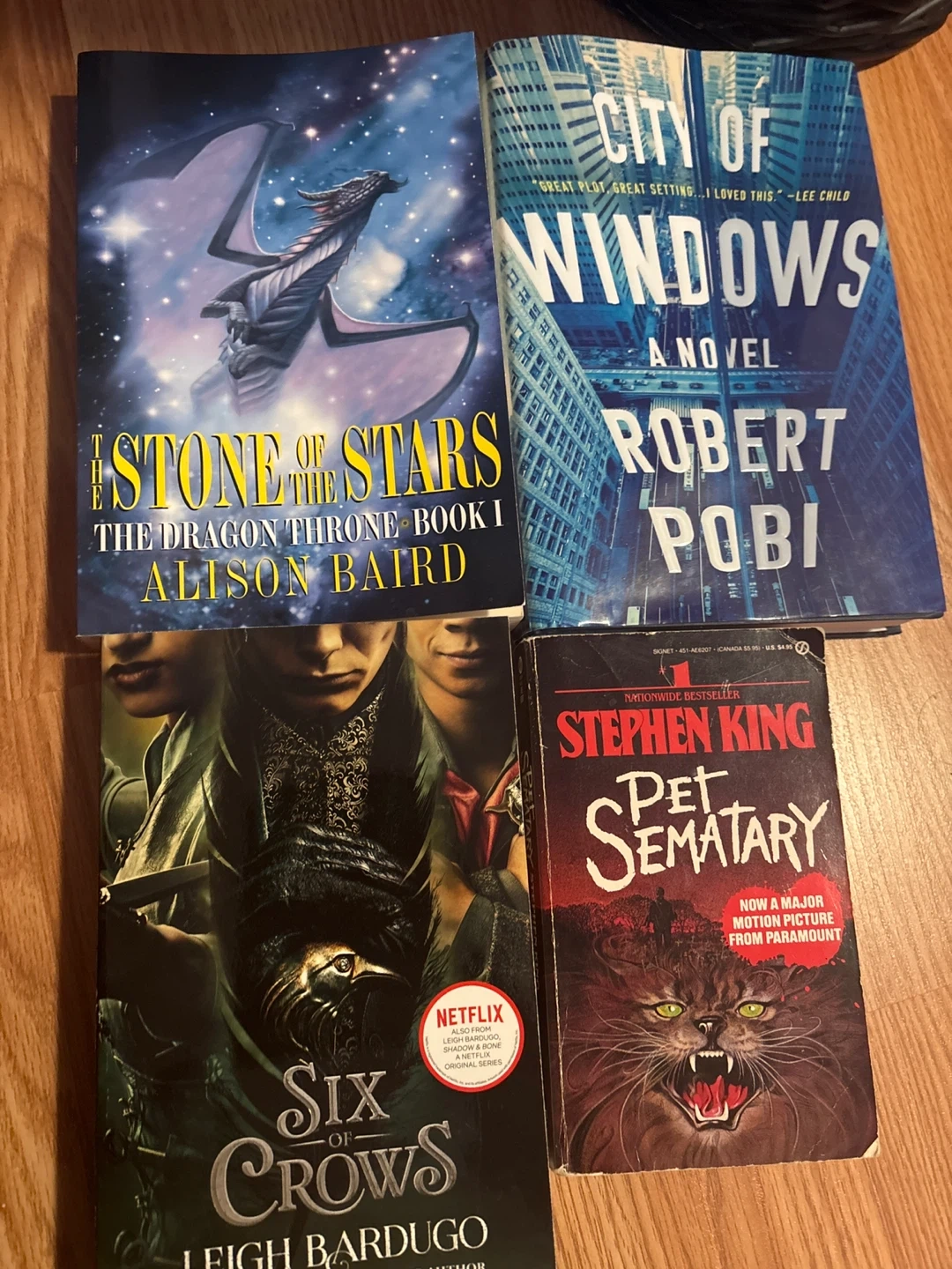 Most barely touched, kids books is the second picture, romance books the third picture, the mystery fantasy books are the last picture