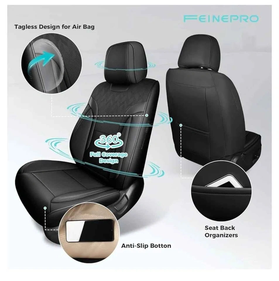 Black Car Seat Covers Full Set - Breathable Faux Leather Univers