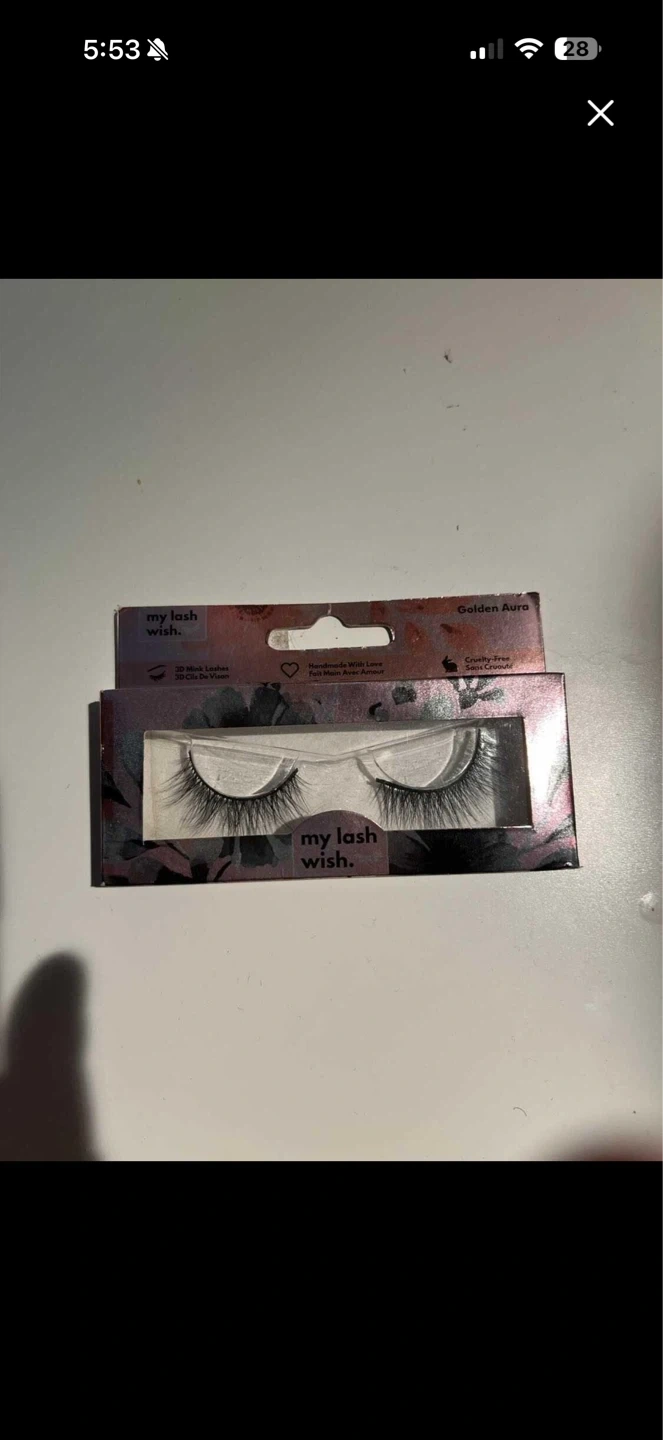 These are My Lash Wish Golden Aura lashes, offering a lightweight and reusable design. They're cruelty-free and provide a natural-looking finish. Perfect for achieving a glamorous look!