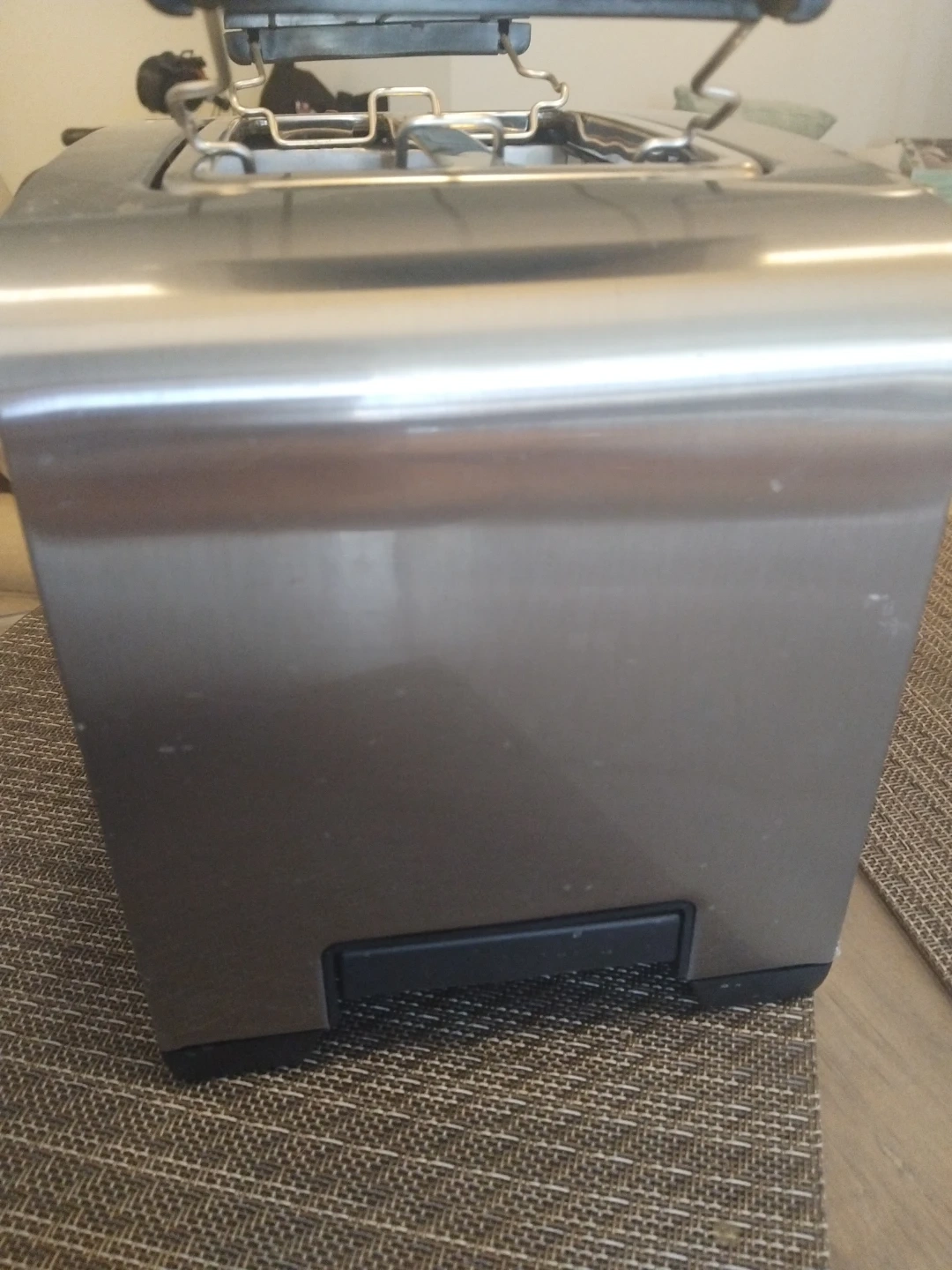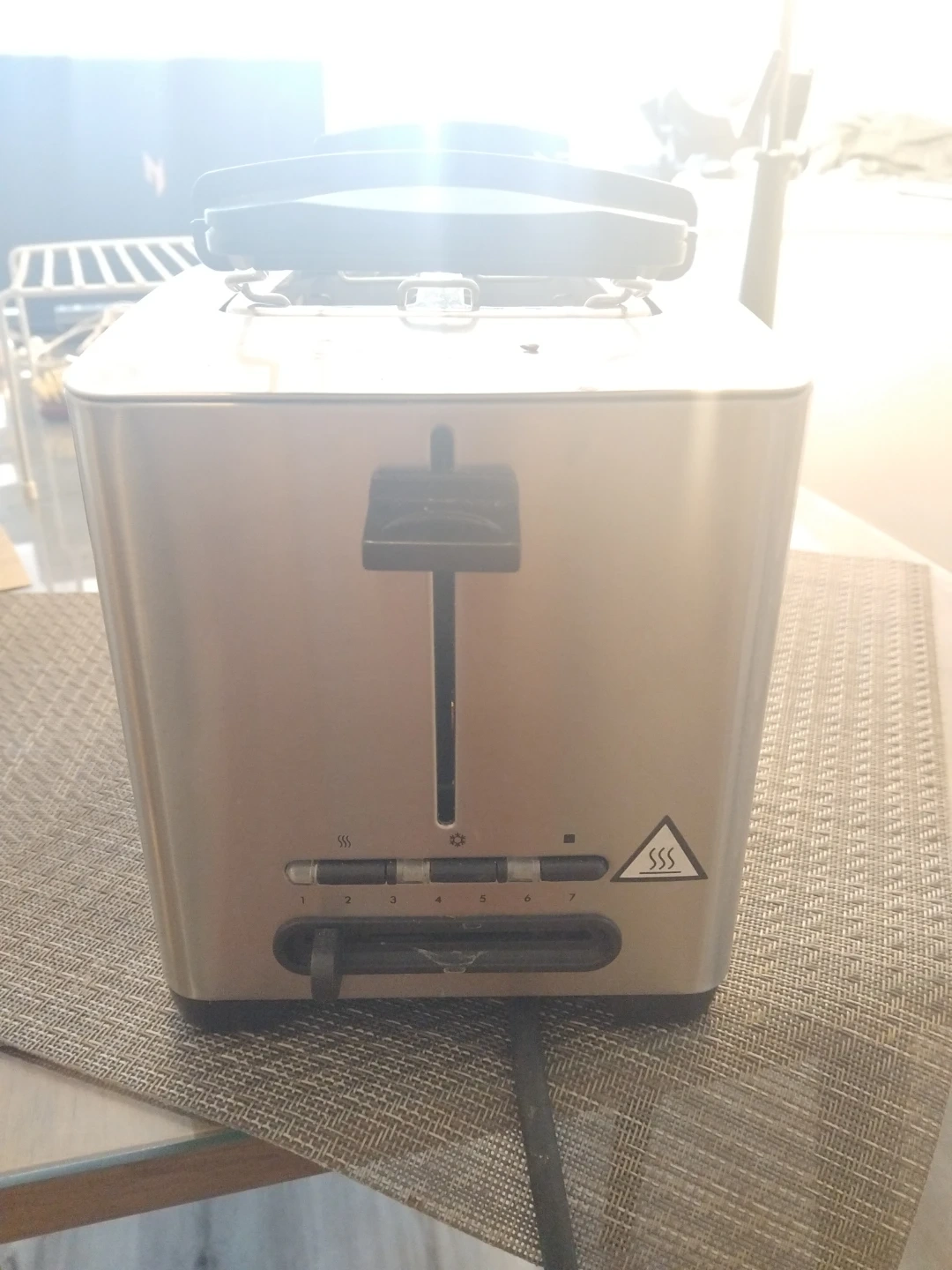 This is a silver Princess 2-slice toaster. It has multiple browning settings and a warming rack. It's made of stainless steel.