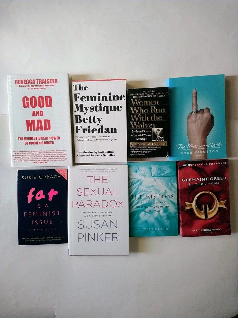 $6 each except The Feminine Mystique. Cash only; prices are firm.