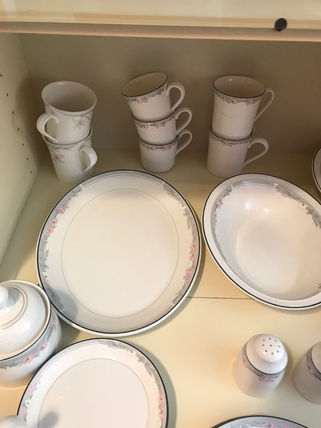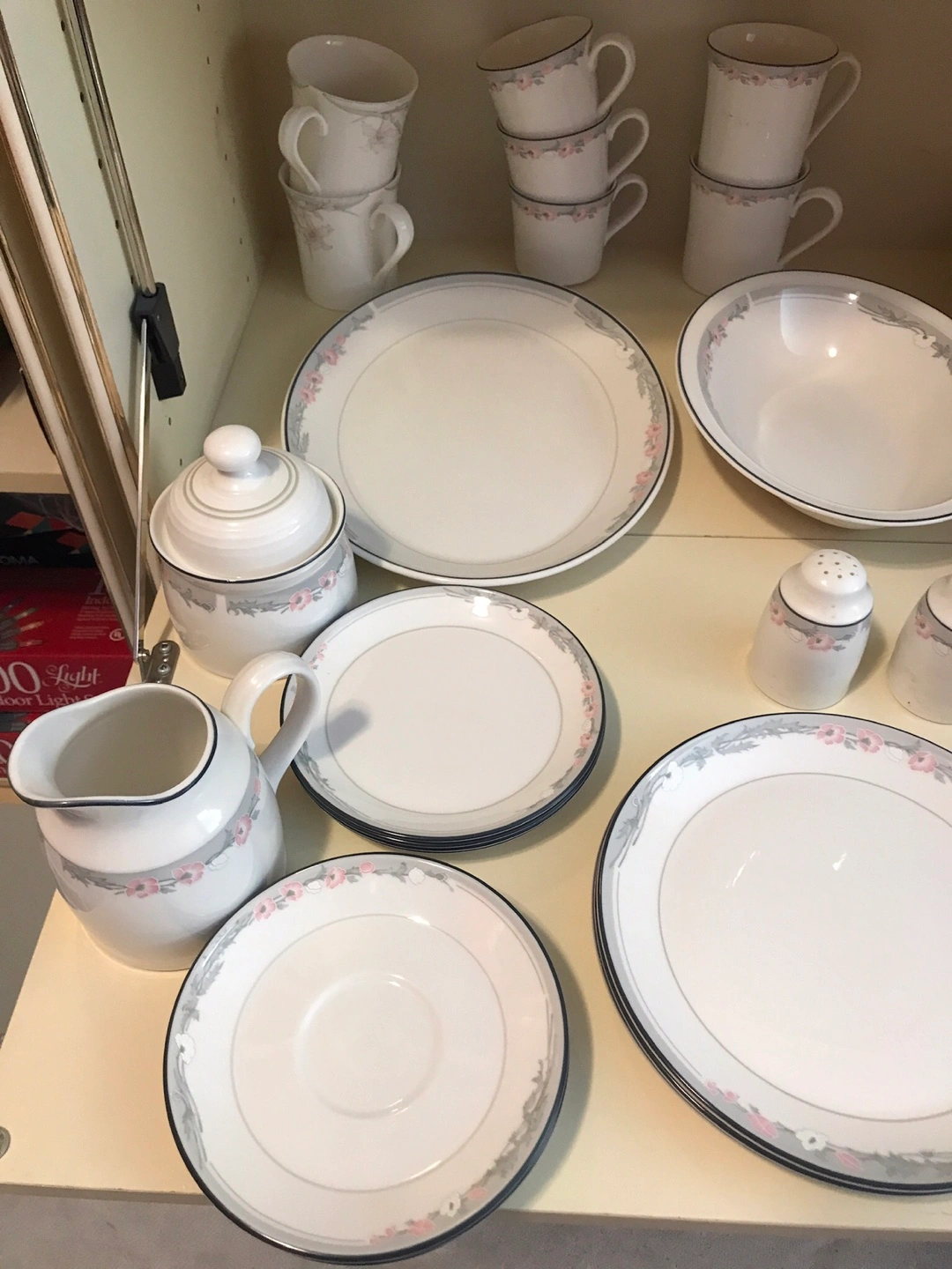 White Dinnerware Set with Pink Floral Trim