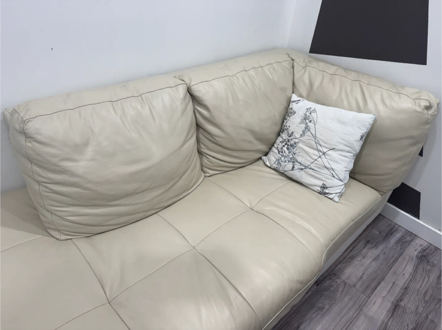 Cream Leather Chaise Lounge sofaSofa