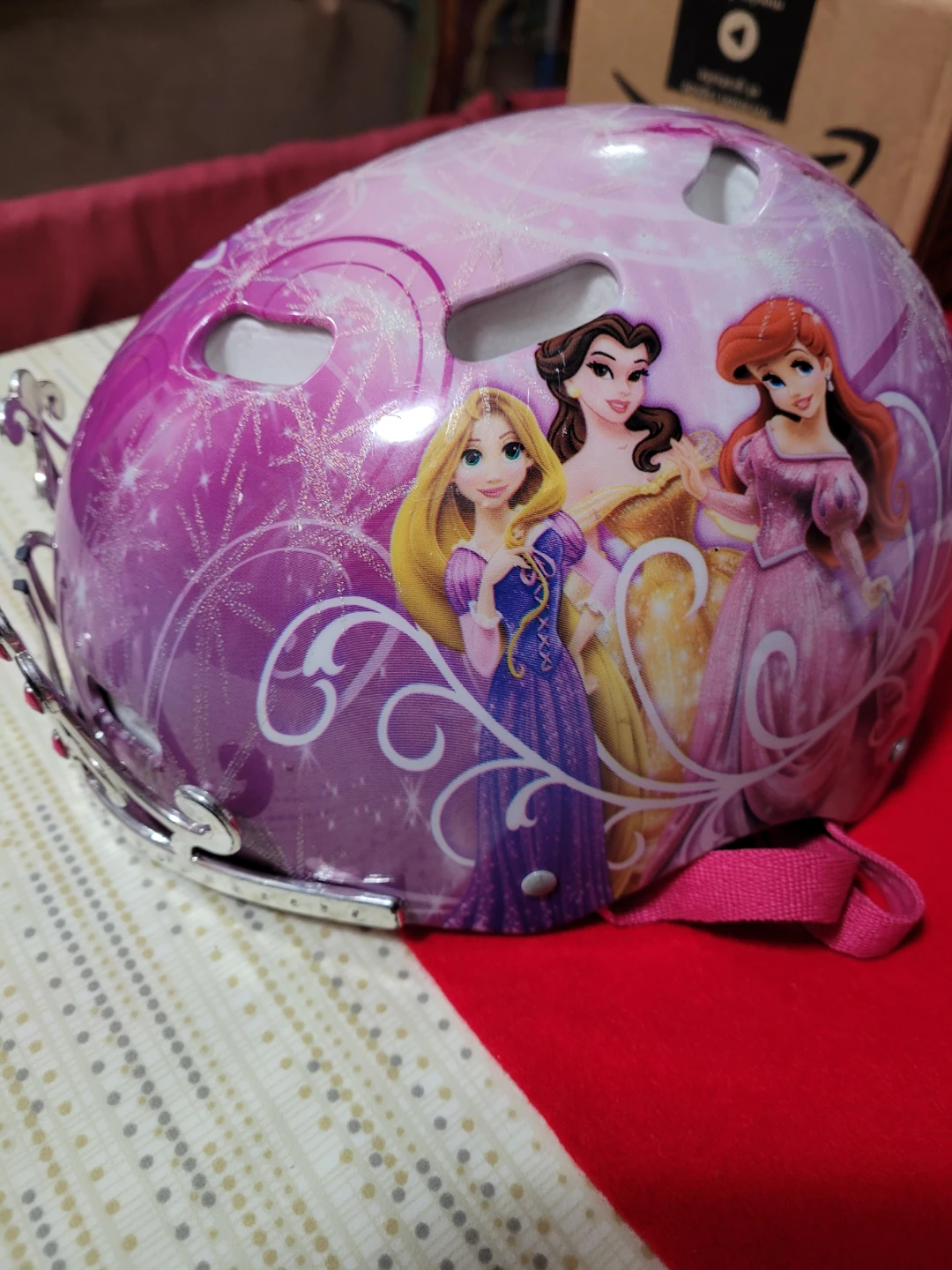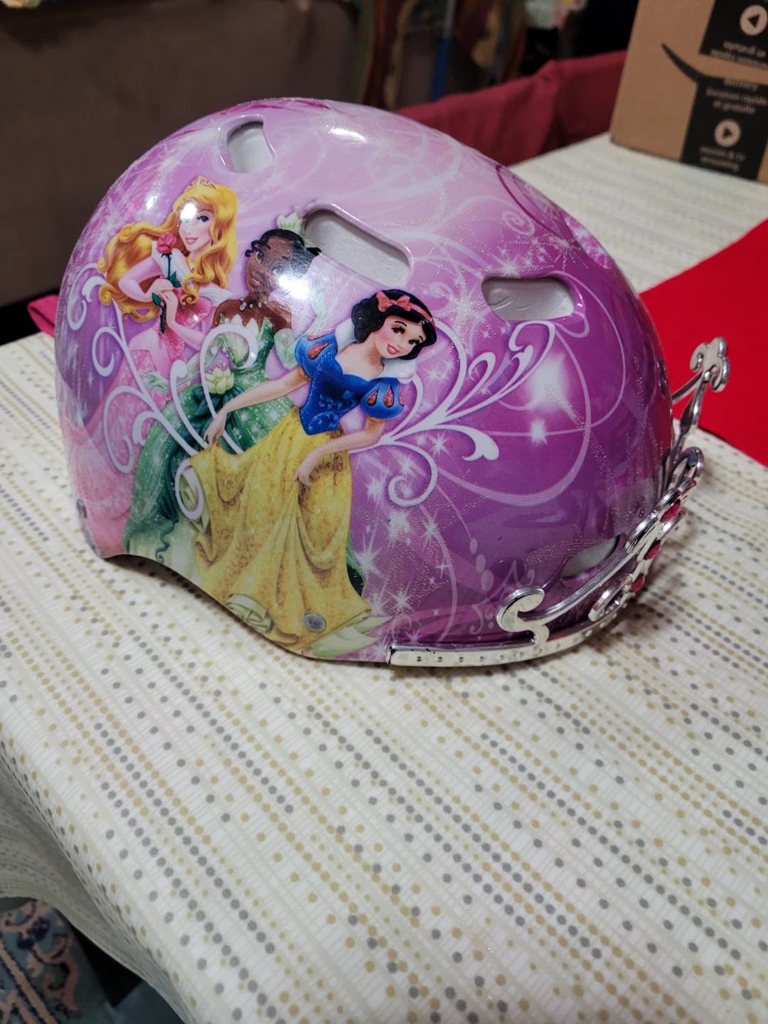 Selling a Disney Princess helmet, perfect for biking or skating! The size is 51-54 cm. It meets ASTM F1492-08 standards for skateboarding and trick roller skating
