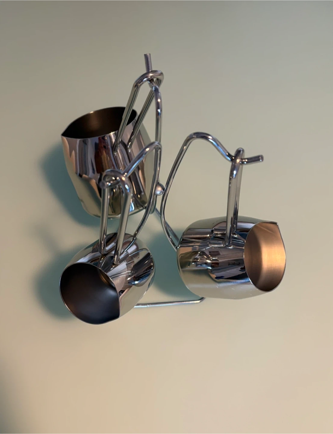3 pieces Stainless Steel milk frothing & Turkish coffee pot set with stand.