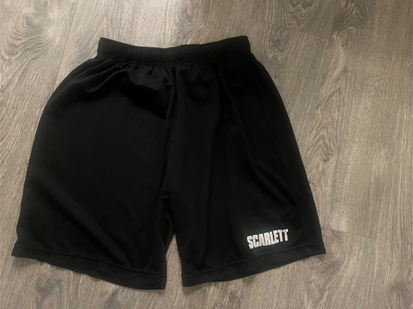 Selling pair of black shorts with 'SCARLETT' written on the leg. They are in great condition.