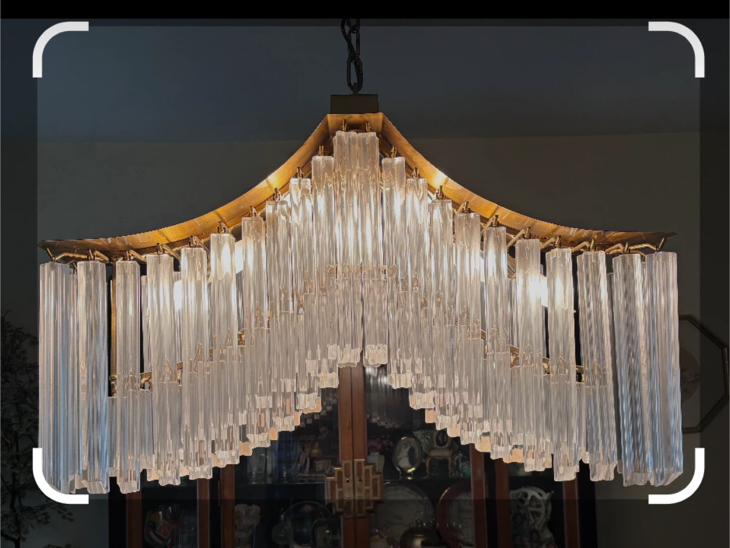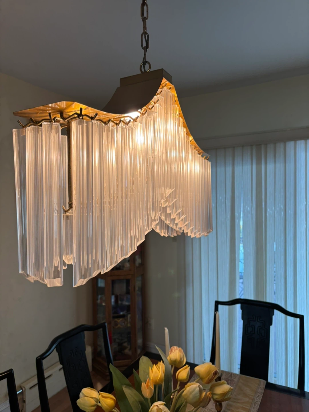 Selling a vintage 1970s Pagoda style chandelier. It features crystal rods and brass accents. One owner. Pristine condition. Same fixture online for $4,000!