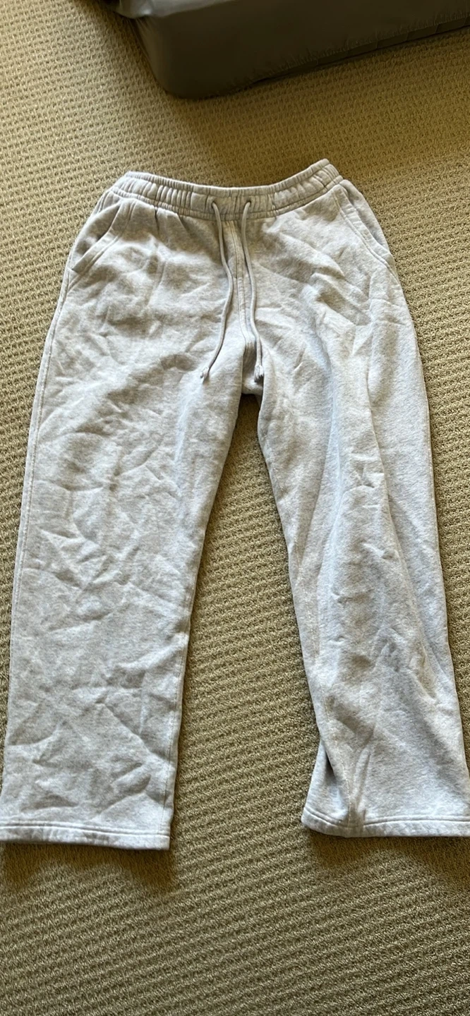 Selling a pair of Abercrombie & Fitch sweatpants in a neutral grey colour. They're a size medium and in great condition. very comfy