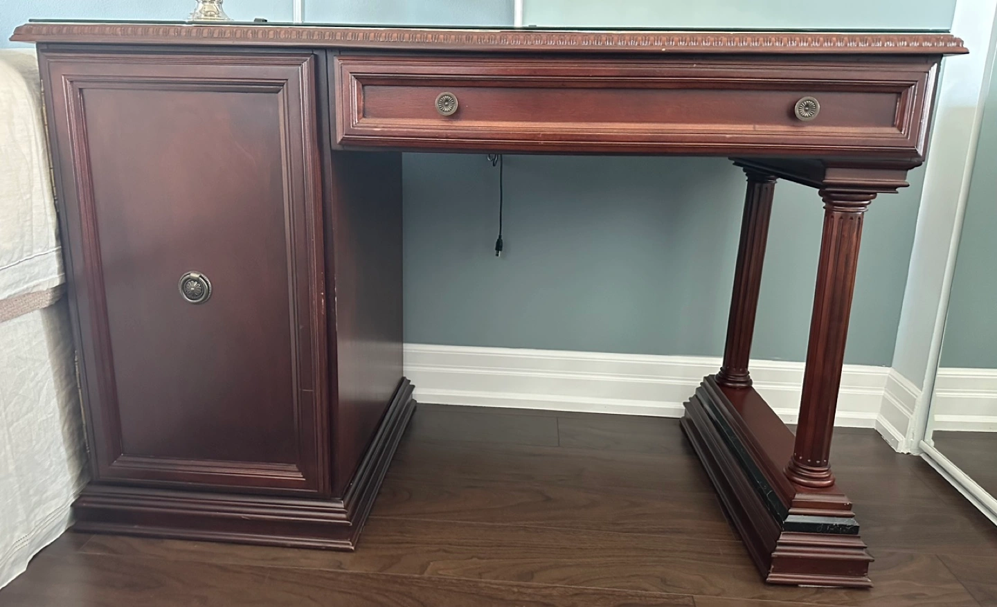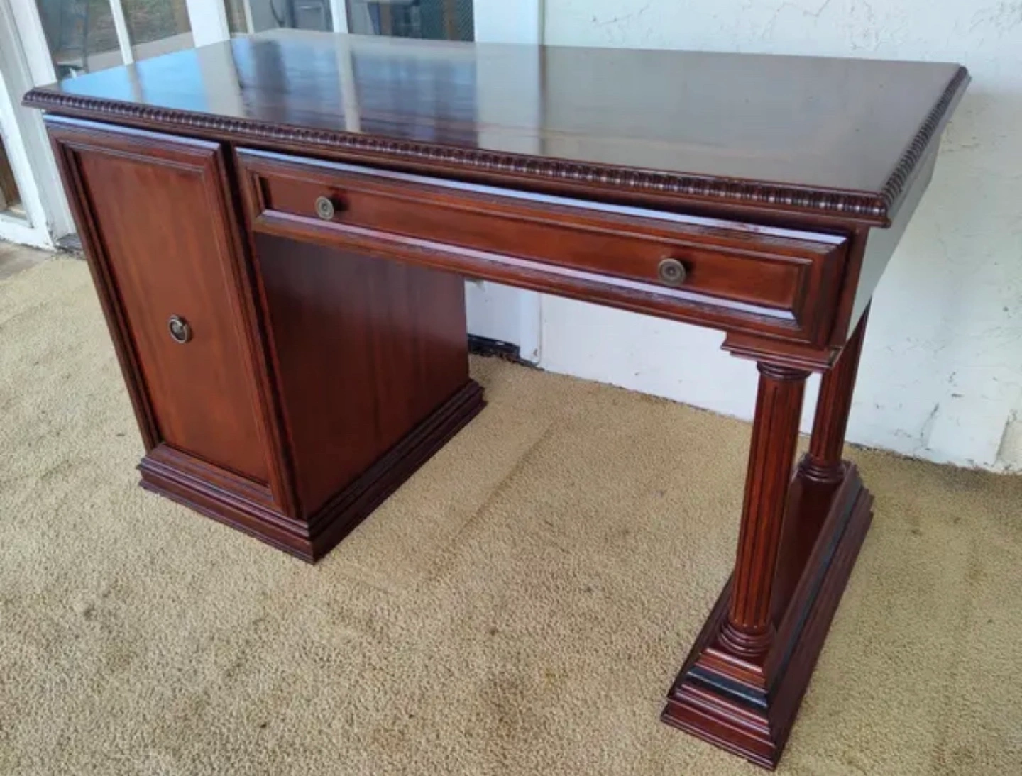 Beautiful Dark Wood Executive Desk & File Cabinet Set