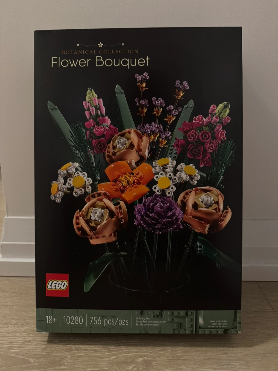 This is the LEGO Botanical Collection Flower Bouquet building set. It includes 756 pieces to create a beautiful display. Vases are not included with this set.