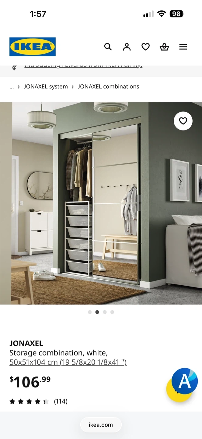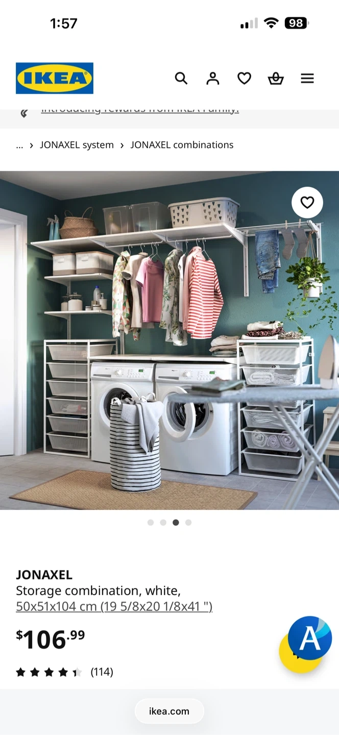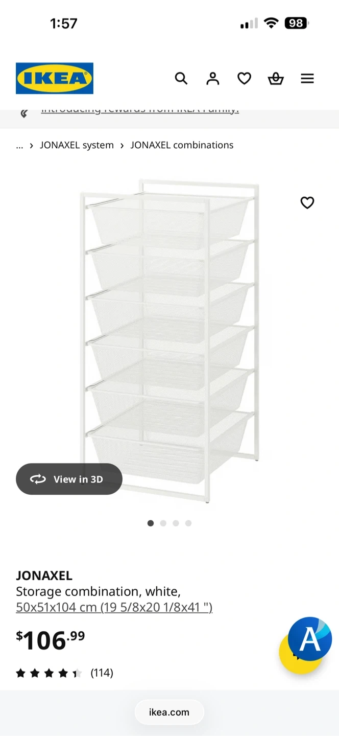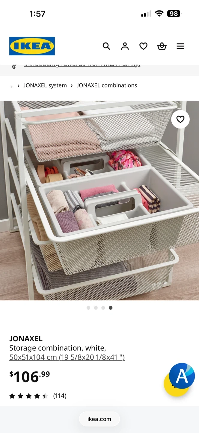 Selling an IKEA JONAXEL storage combination in white! It measures 50x51x104 cm (19 5/8x20 1/8x41 "). Great for organizing your space.