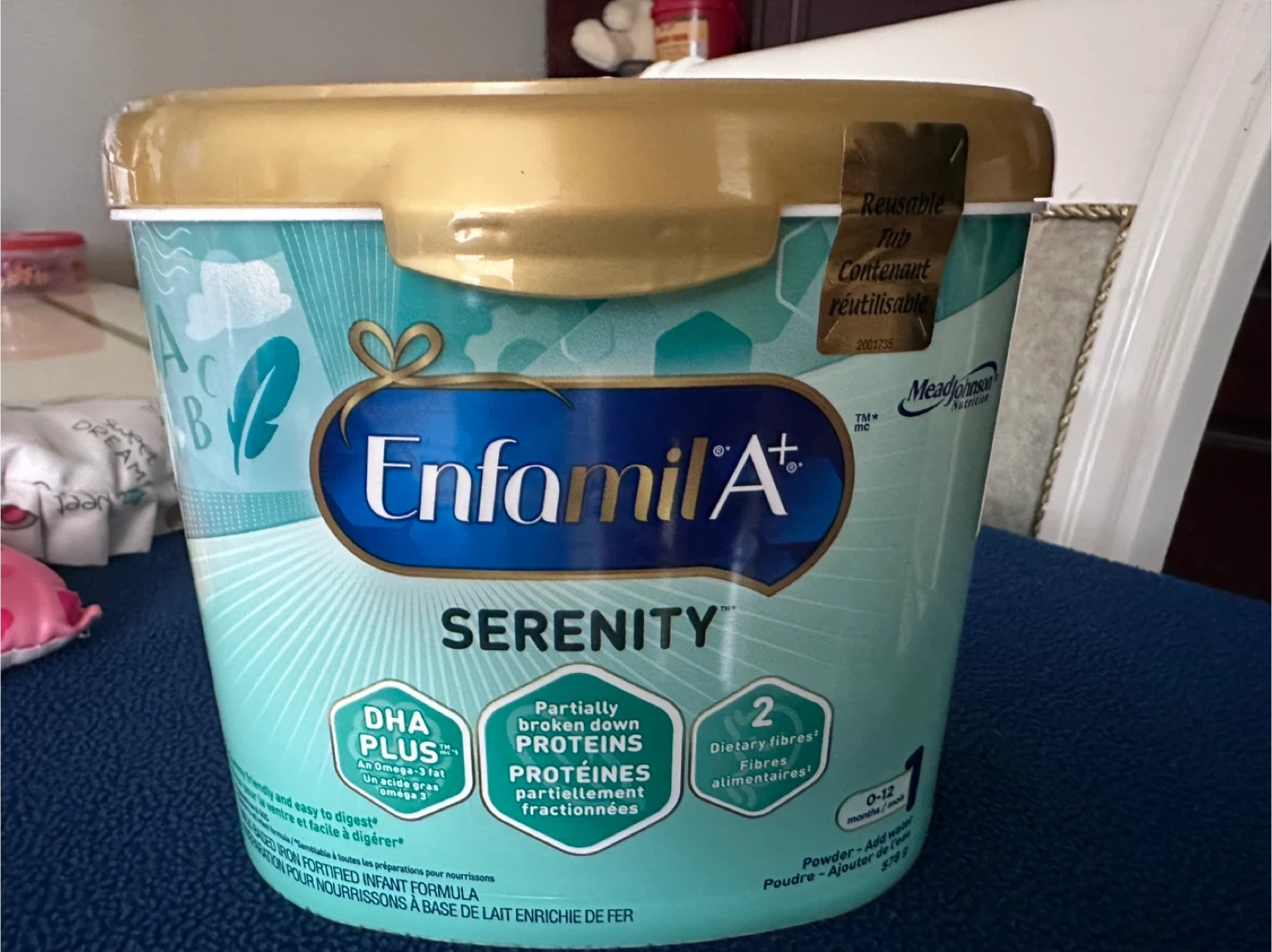 Enfamil A+ Serenity infant formula. It's DHA Plus with partially broken down proteins and dietary fibres. This powder is suitable for 0-12 months.