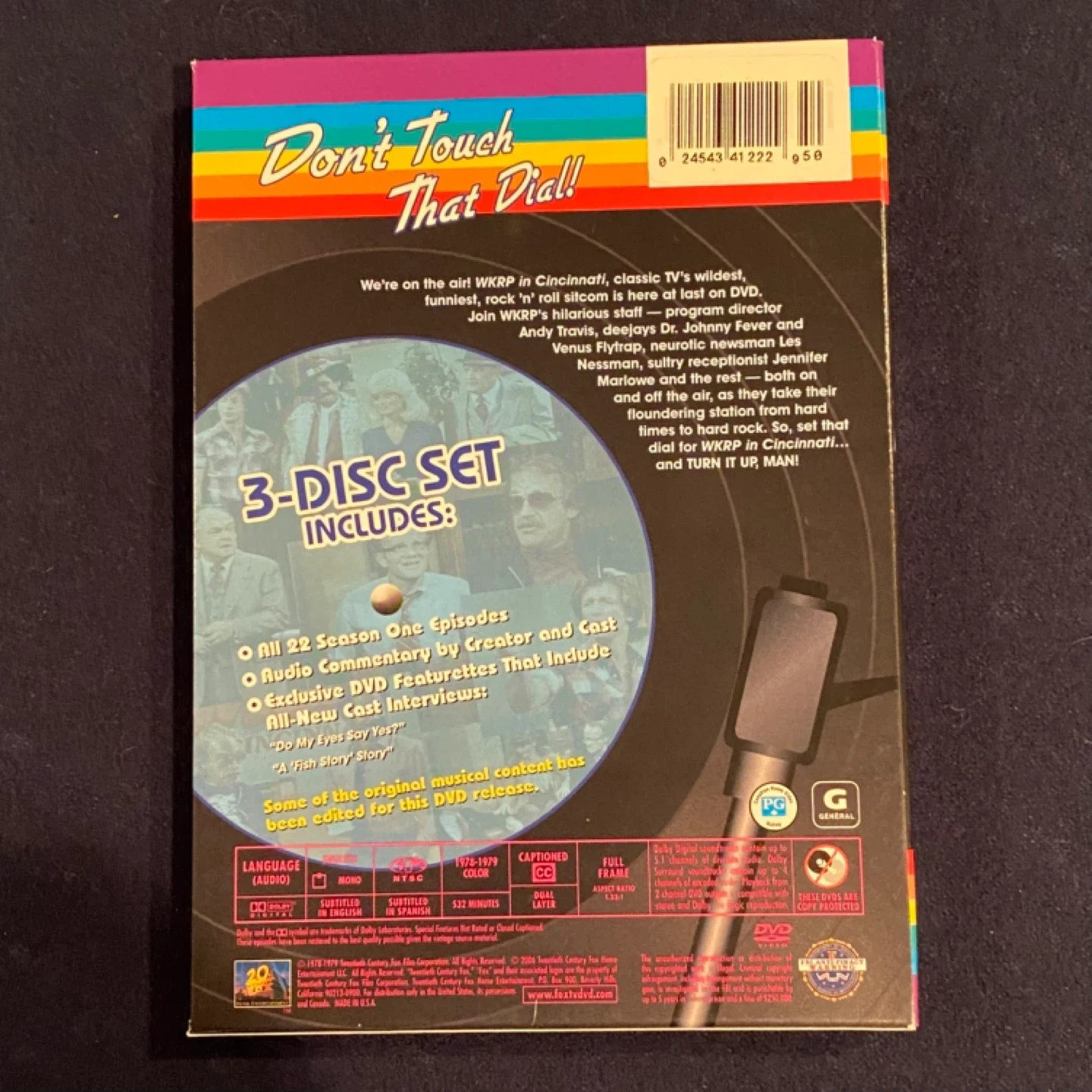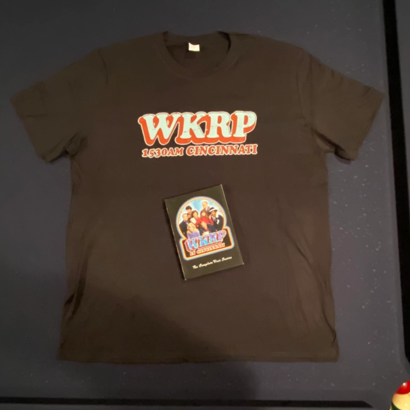 A brand new size XL WKRP in Cincinnati t-shirt and complete first season of WKRP in Cincinnati on DVD. It includes all 22 episodes from the debut season. Audio commentary by creator and cast is included, plus exclusive featurettes and interviews. A great addition for any fan of classic television!