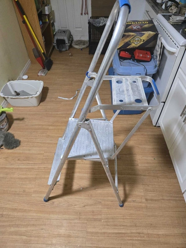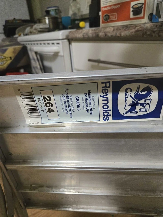 I'm selling a Reynolds aluminum 3-step ladder, perfect for household tasks. This sturdy, lightweight ladder is in used condition, but still very reliable. Here are some details: