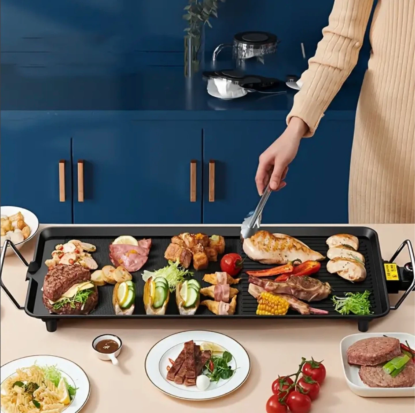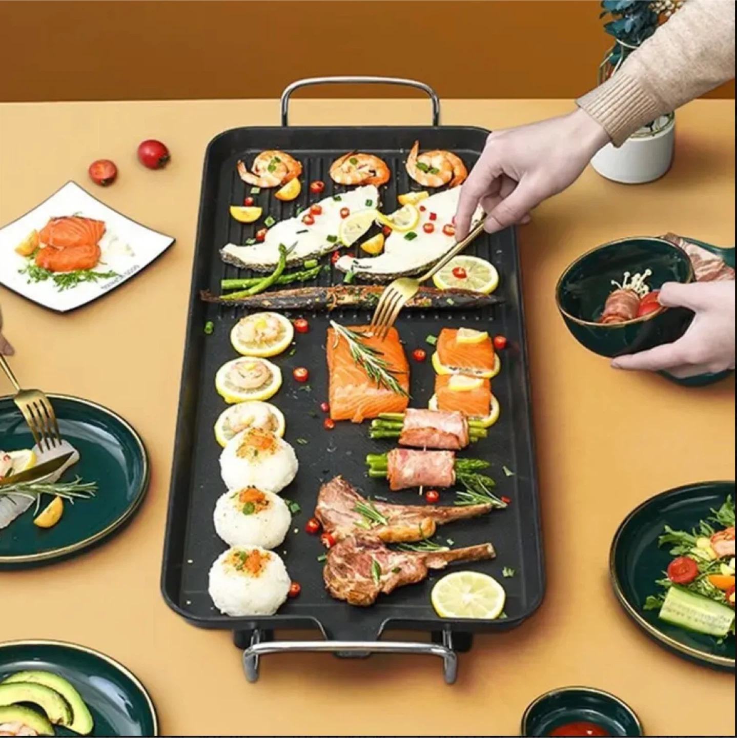Electric Grill Non Stick Practical Multifunctional Stove Top Flat Griddle with Original Flavor for Indoor BBQ Hotpot Cooking (US Plug 100-240V 110V)