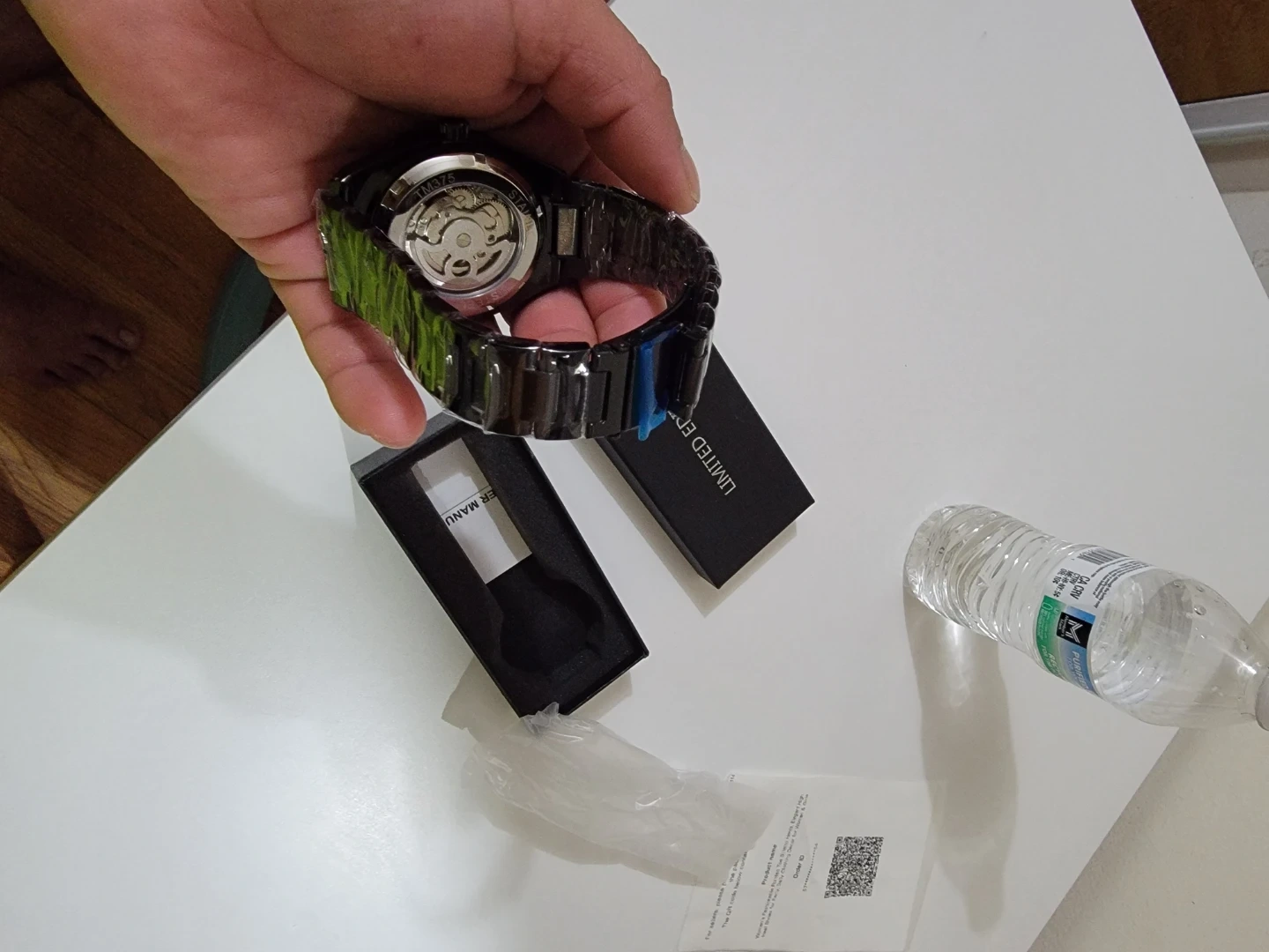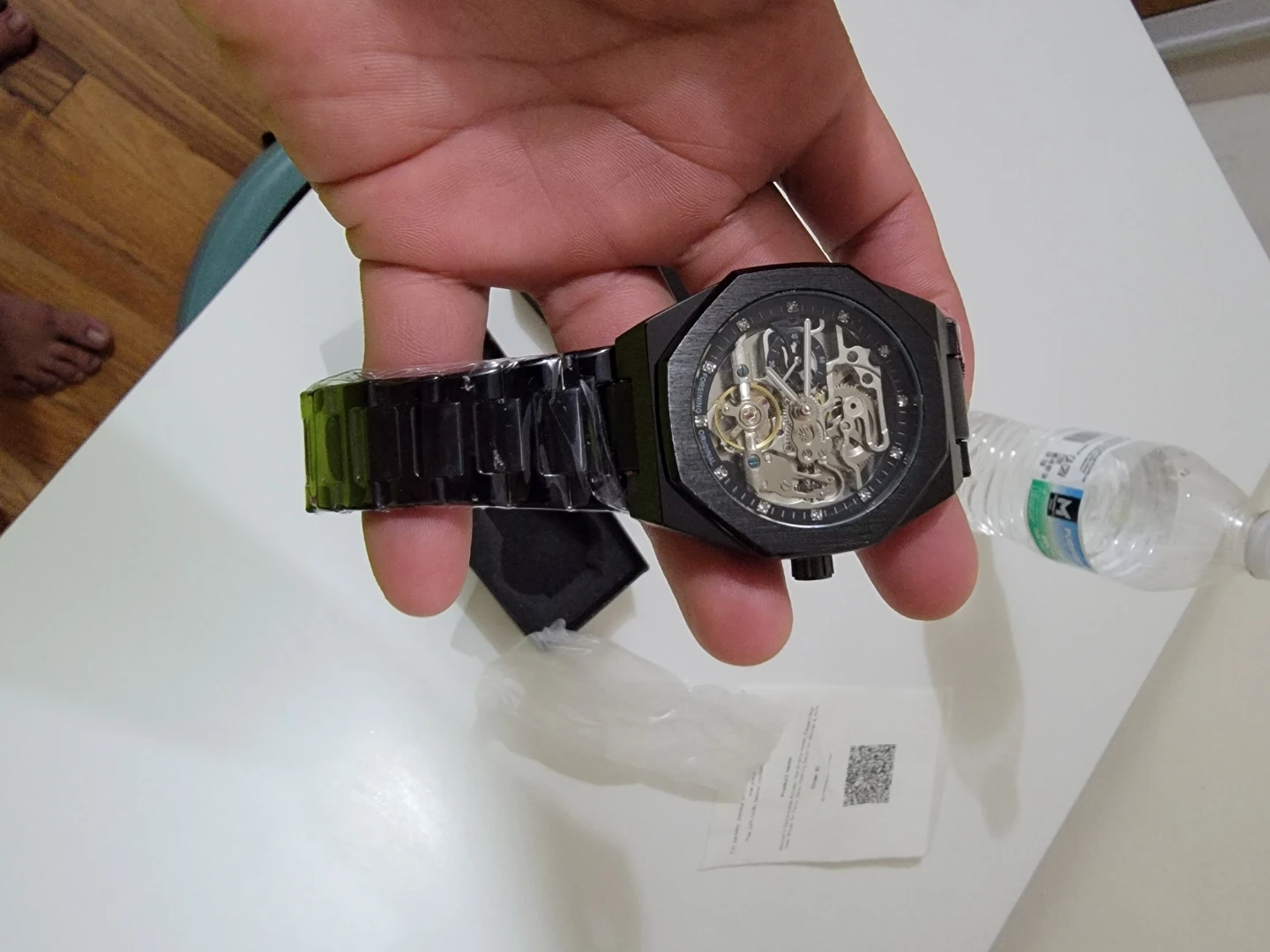 Selling a brand new, never worn Forsining skeleton watch in its original box! It's a striking black color and features a unique skeleton design that lets you see the inner workings of the watch. The watch comes with its original box come pick up 25$