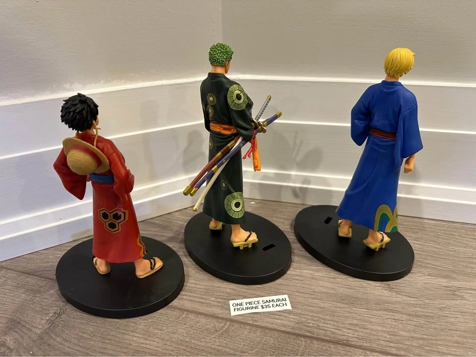 Selling these beautiful new samurai-themed One Piece figurines featuring Luffy, Zoro, and Sanji. All three are brand new and in perfect condition, no smudges or cracks. Comes with everything in the picture (the figures can be separated from the black stand). $35 each or $100 for all 3, price is firm. Cash or e-transfer. Pickup in Richmond Hill.