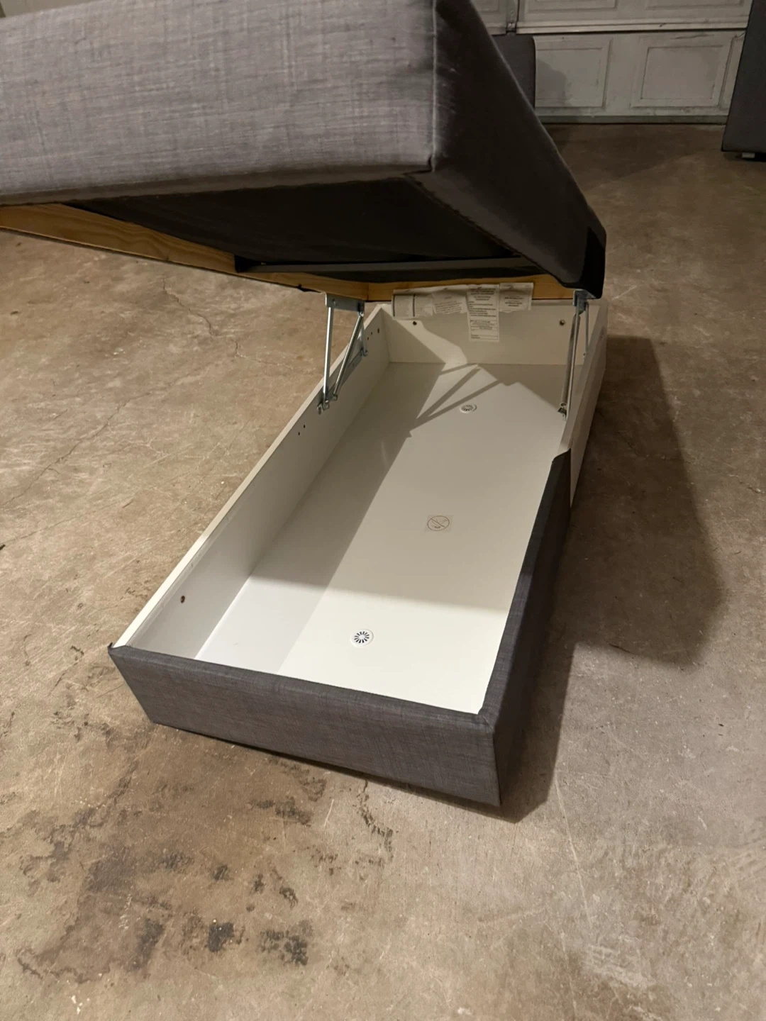 This is an IKEA FRIHETEN corner sofa-bed with storage. Clean and pet free. The chaise can go to either side and theres storage.