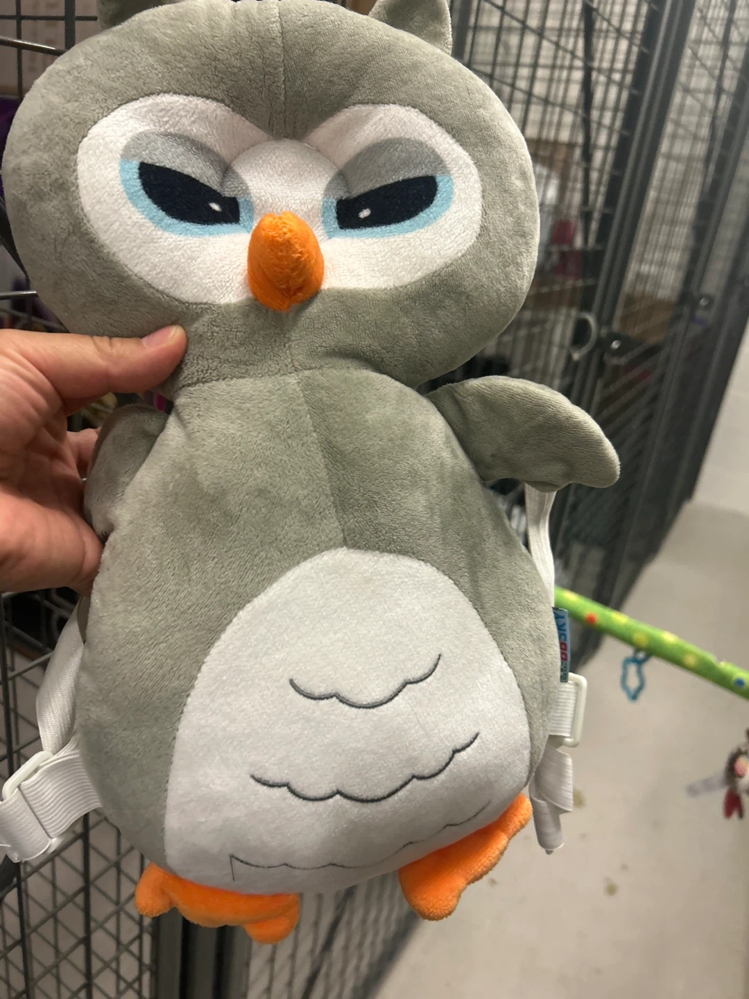 This soft, plush owl backpack is designed to protect a child's head. It features adjustable straps for a comfortable fit. It's great for babies and toddlers learning to walk!