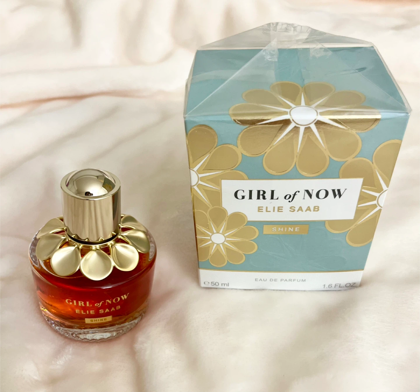 Elie Saab Girl of Now Shine Eau de Parfum. It's 50 ml. A thick gourmand with a hint of brightness and sweetness. Never sprayed. I just took it out of the box to look at the bottle.